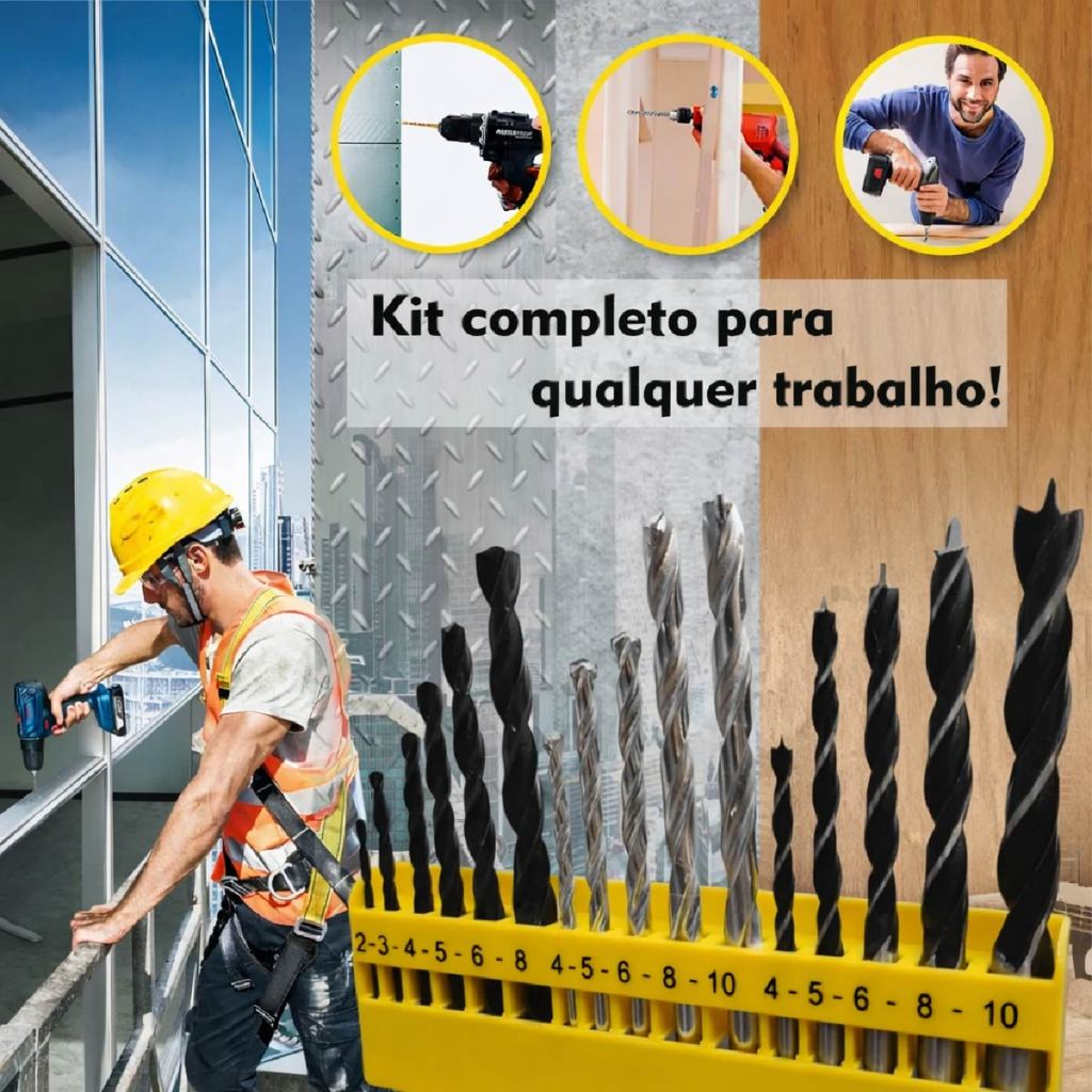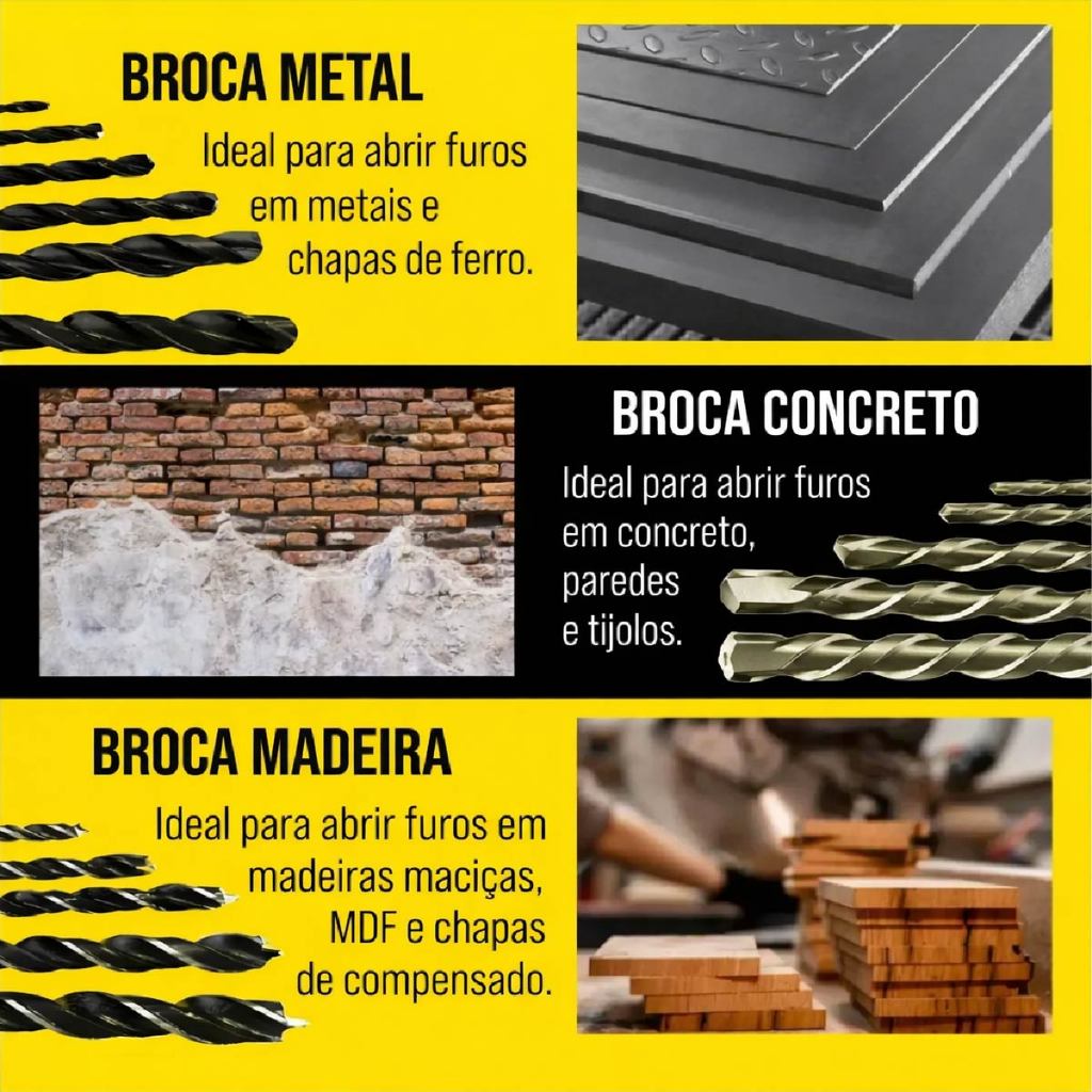 Jogo de Brocas para Madeira Concreto Metal Videa Furadeira Uso Profissional