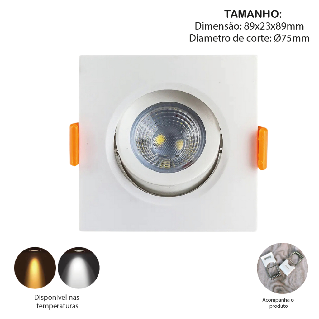 Kit 10 Luminária Spot Led Quadrado Direcionável 5W Embutir Gesso Teto Luz Fria ou Quente Bivolt