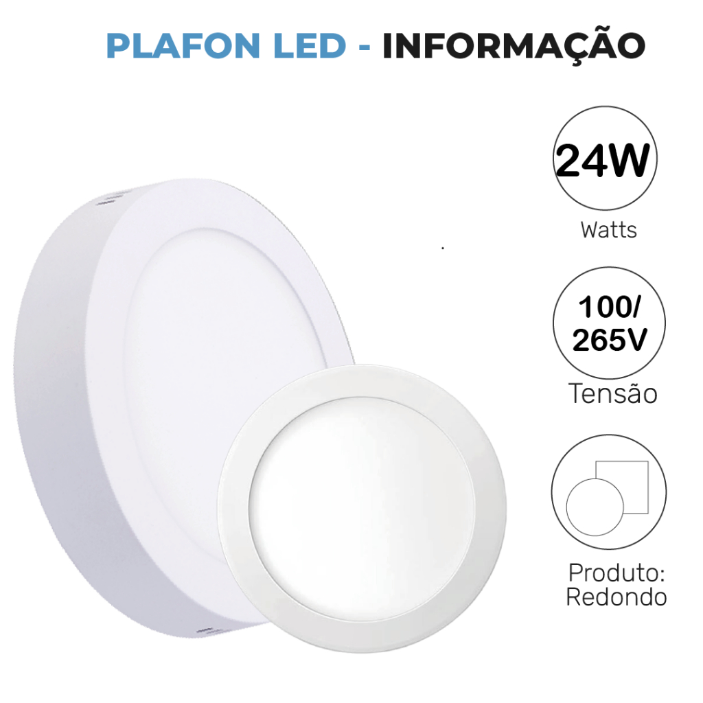 Luminária Painel Plafon Sobrepor Led 24w Redondo Branco Quente | Branco Neutro