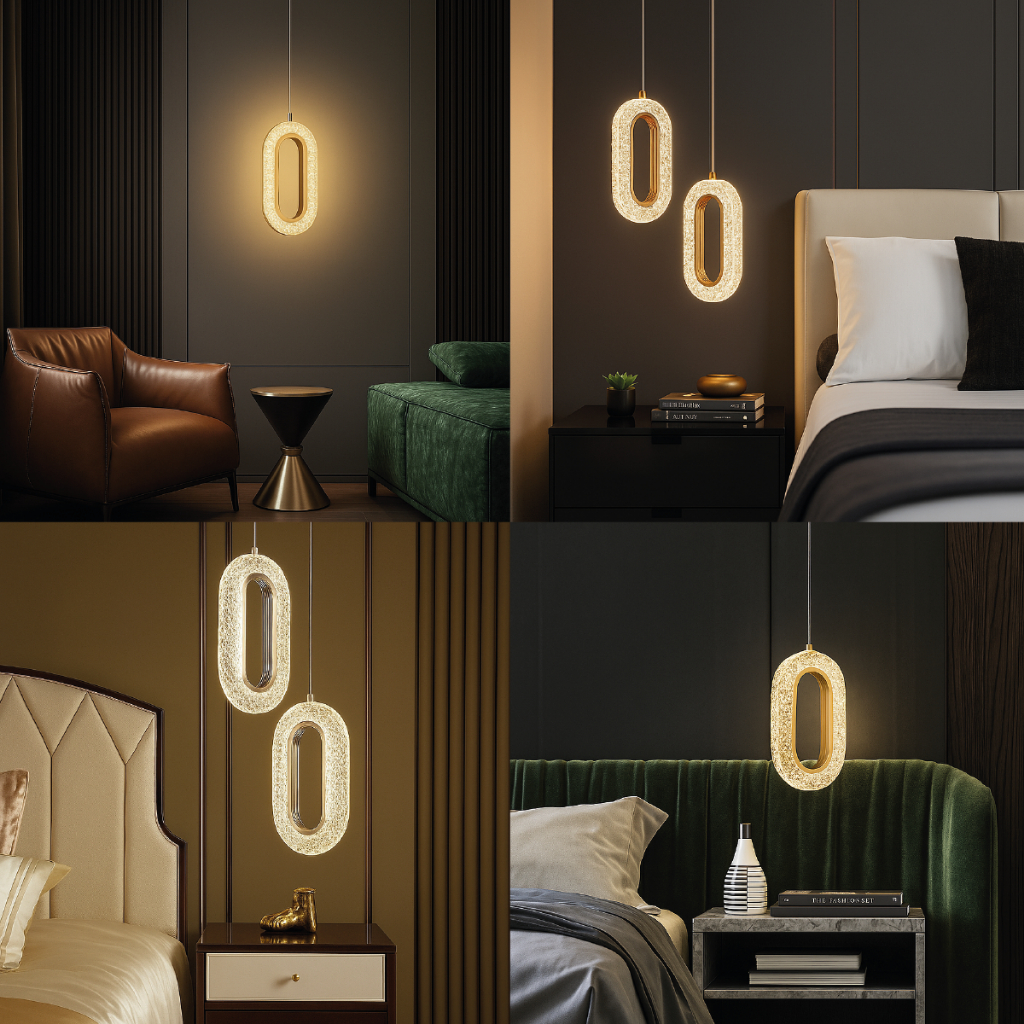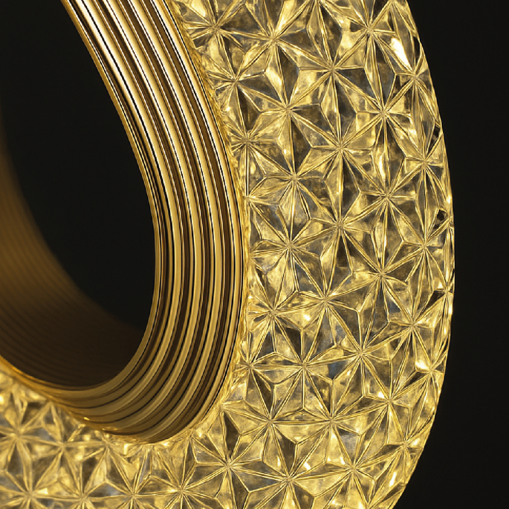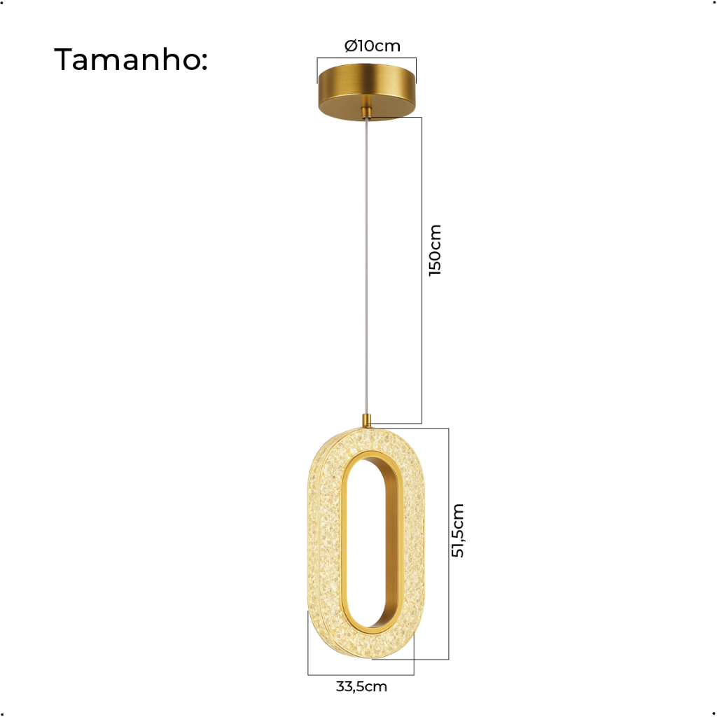 Luminária Pendente Cristal Oval Eclipse LED Moderno Dourado 7W Bivolt com 3 Tons de Luz