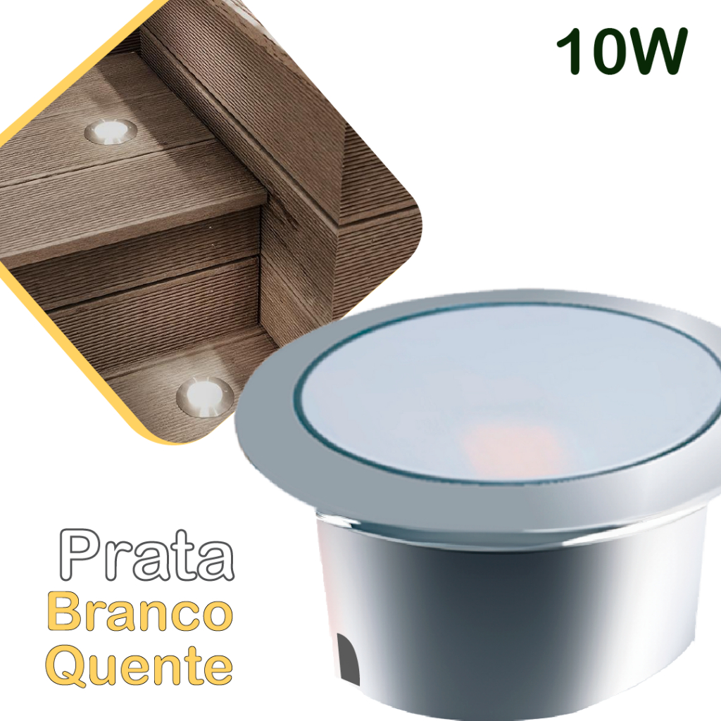 Balizador Spot LED Embutir Chão Piso Jardim 10W Luz Quente e Verde IP65 Bivolt 60Hz