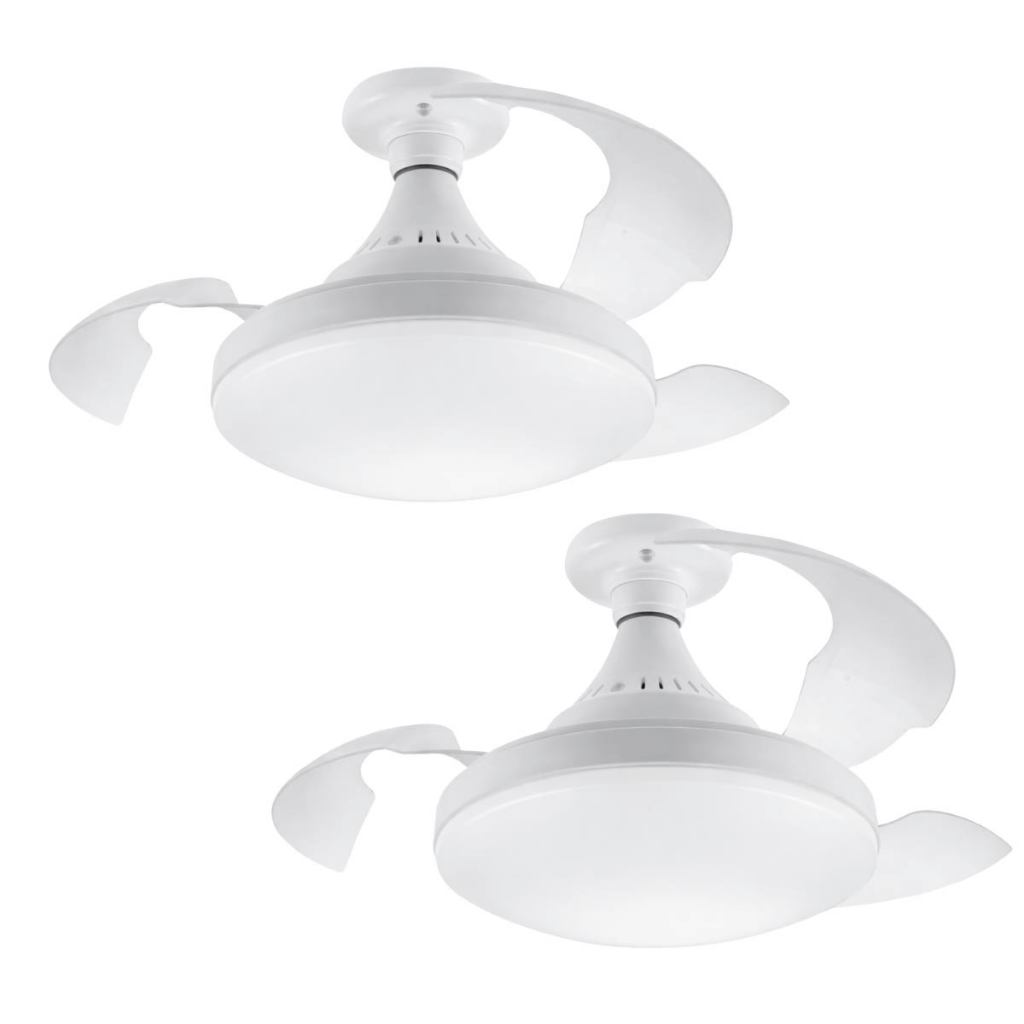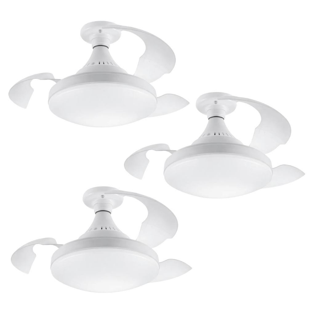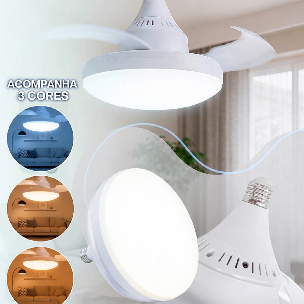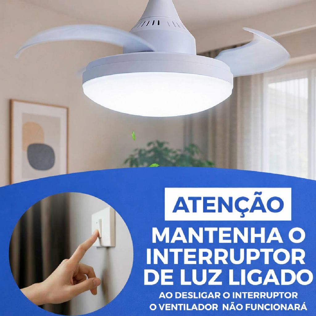 Ventilador de Teto Retrátil Lâmpada 3 Cores Silencioso 100W 3 Pás Design Sofisticado Bivolt