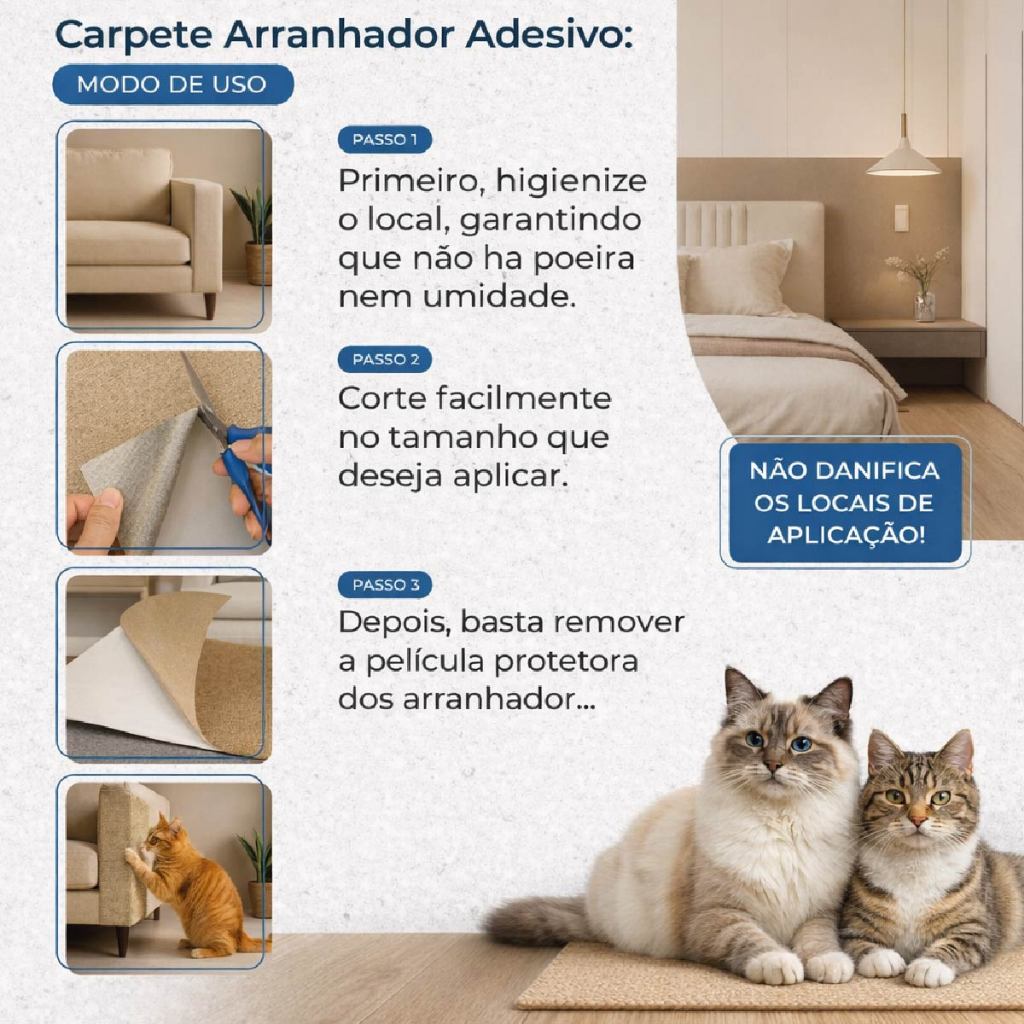 Arranhandor para Gatos Adesivo Protetor Sofá Carpete 30x60cm