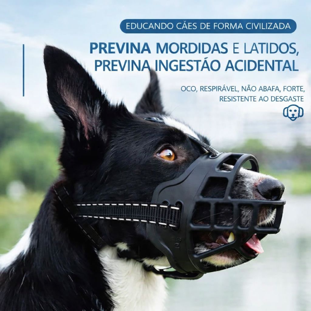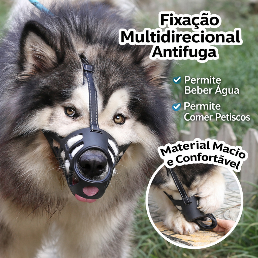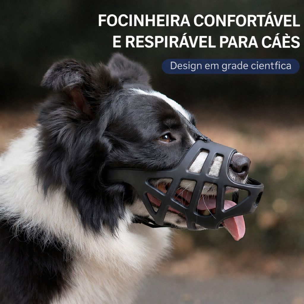 Focinheira Ajustável de Silicone Macia Respirável para Cães de Porte Médio e Grande Cor Preta