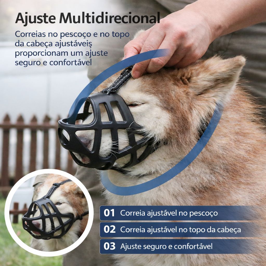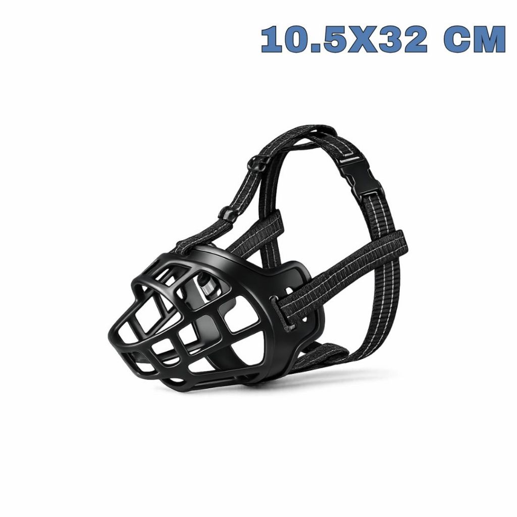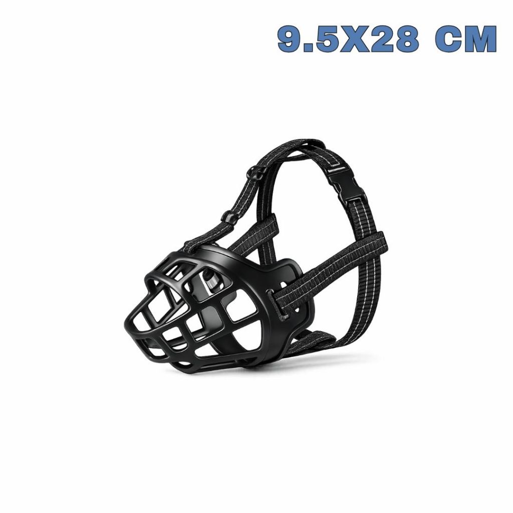 Focinheira Ajustável de Silicone Macia Respirável para Cães de Porte Médio e Grande Cor Preta
