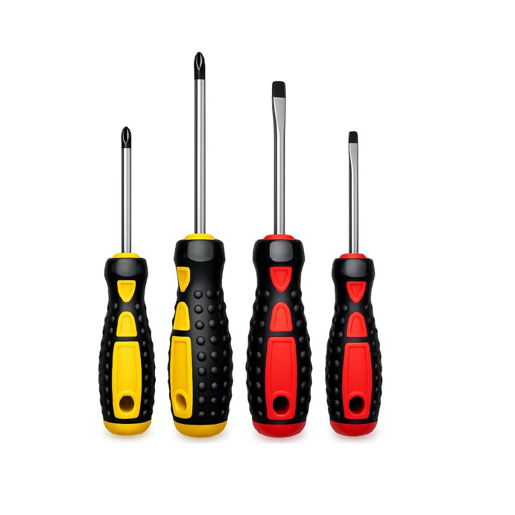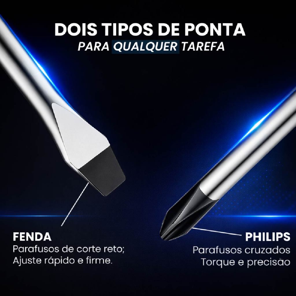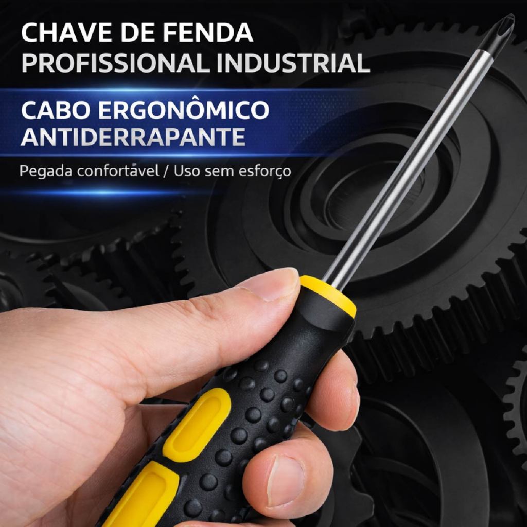 Kit Chave De Fenda e Phillips com Imã 4 Peças Cabo De Borracha Uso Profissional
