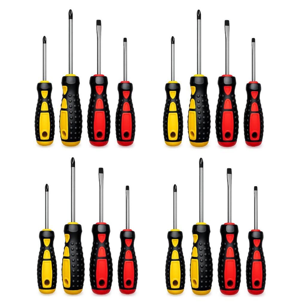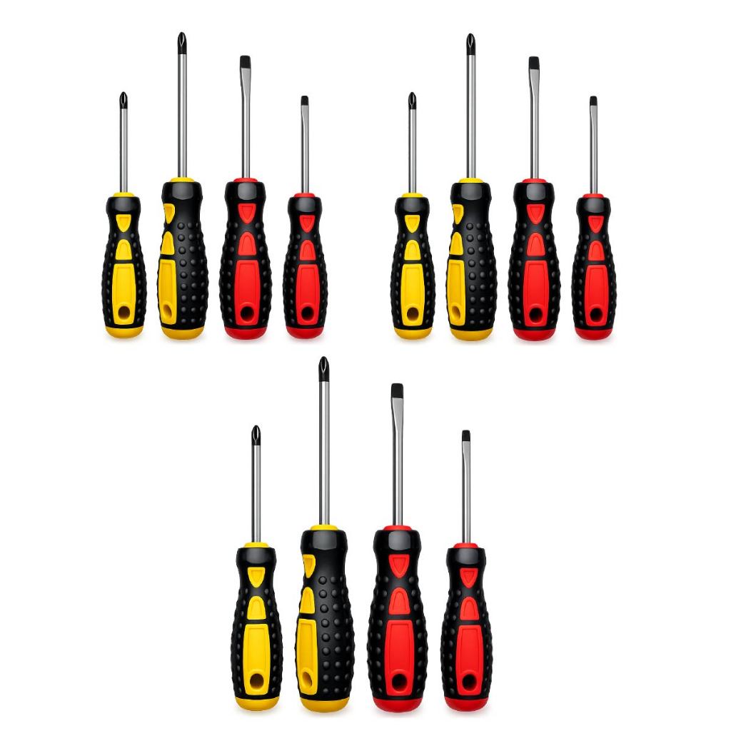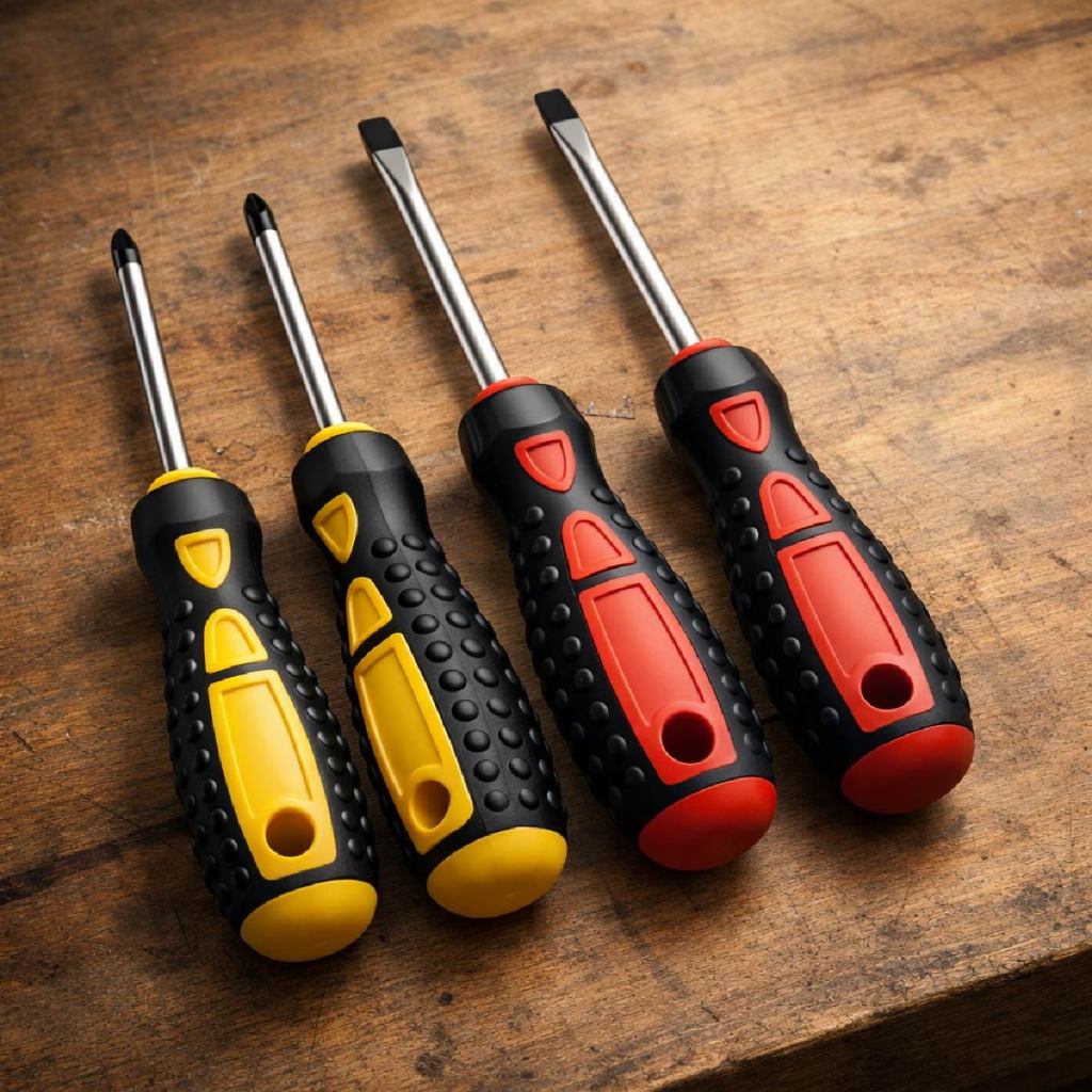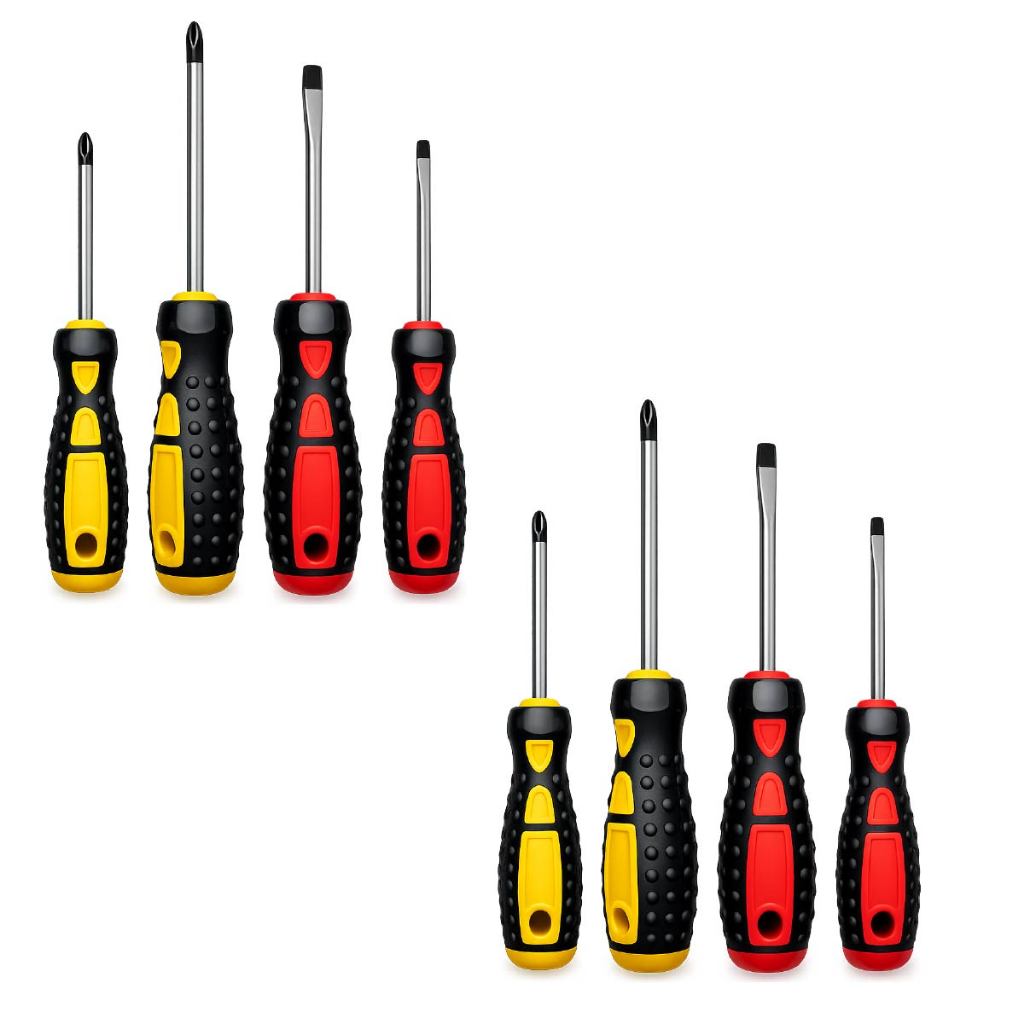 Kit Chave De Fenda e Phillips com Imã 4 Peças Cabo De Borracha Uso Profissional