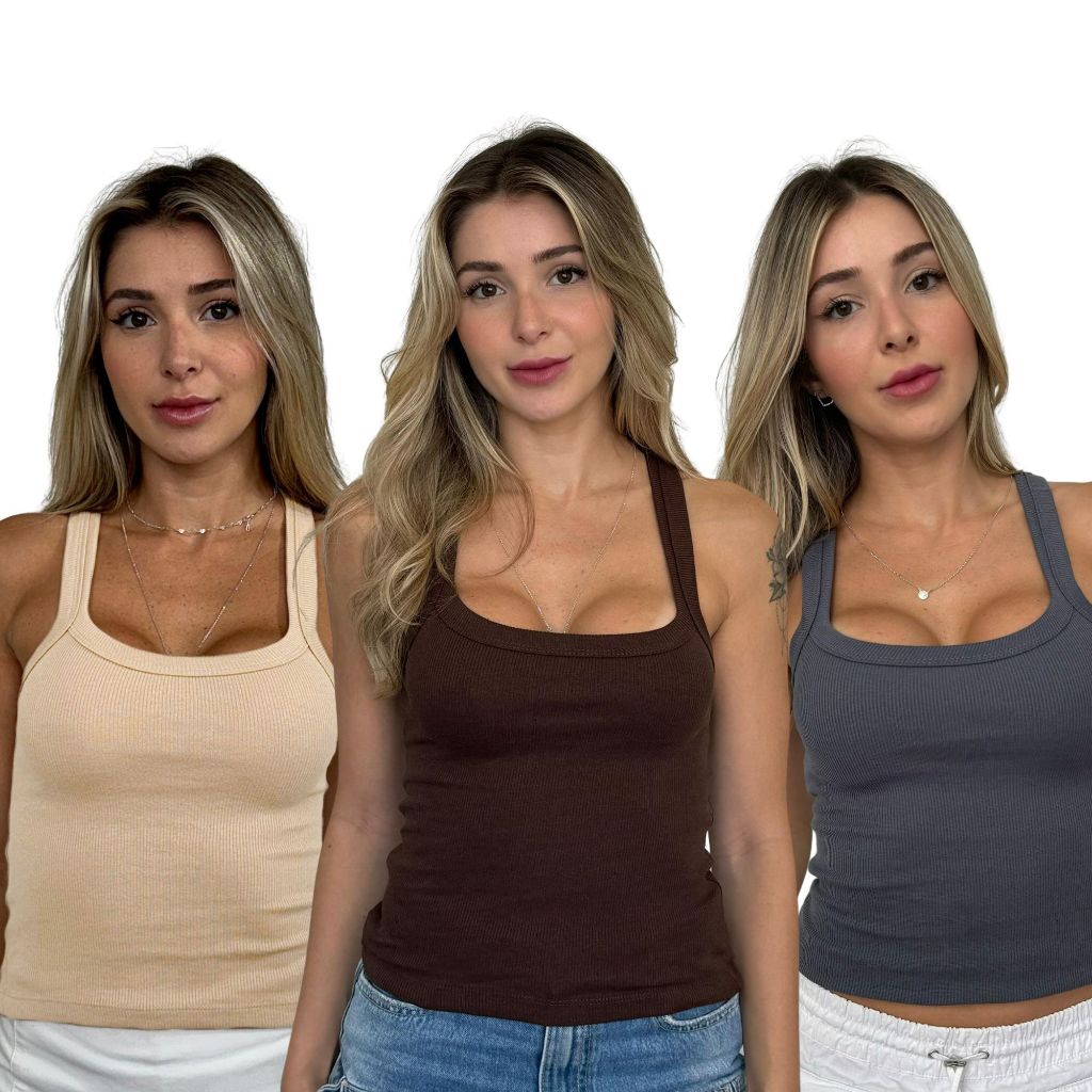 Kit 3 Regata Canelada Feminina Algodão com Elastano