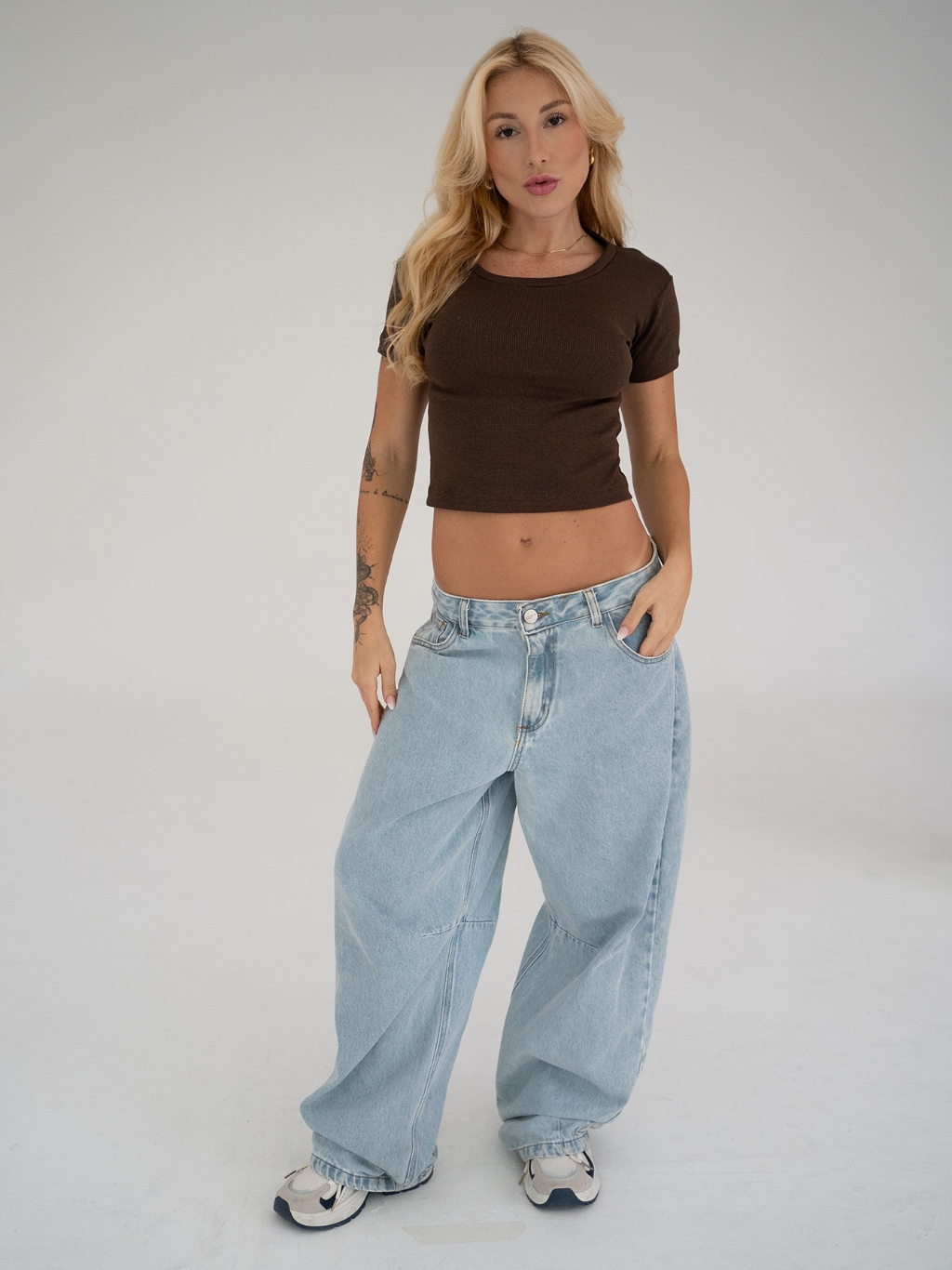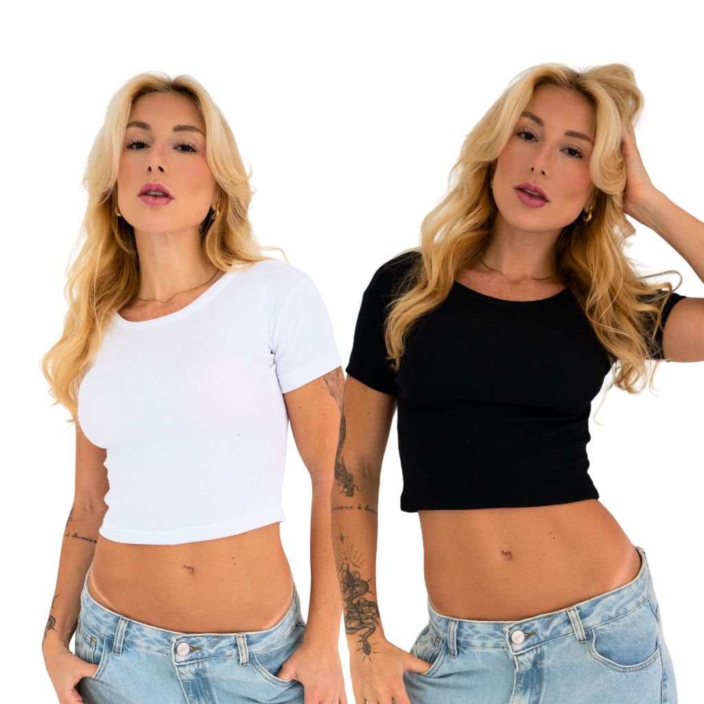 KIT 2 Blusa Baby Tee Canelado em Algodão Feminina Cropped Em Ribana