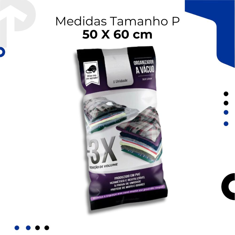 Kit 3 Sacos a Vácuo 50x60cm Organizador para Roupas Mala Cobertor Organização Guarda Roupa