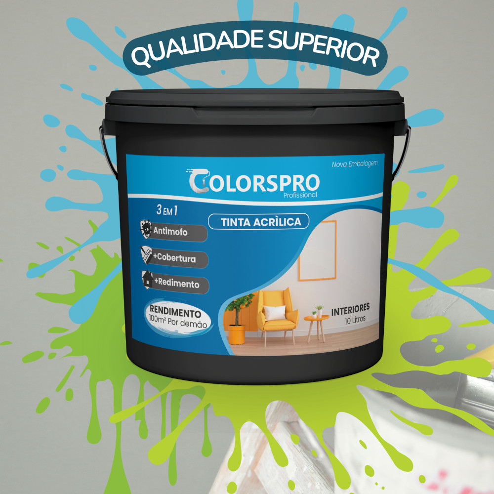 Tinta acrílica interna 10 litros ColorsPro - Sem cheiro e com Antimofo Varias cores - Alta cobertura