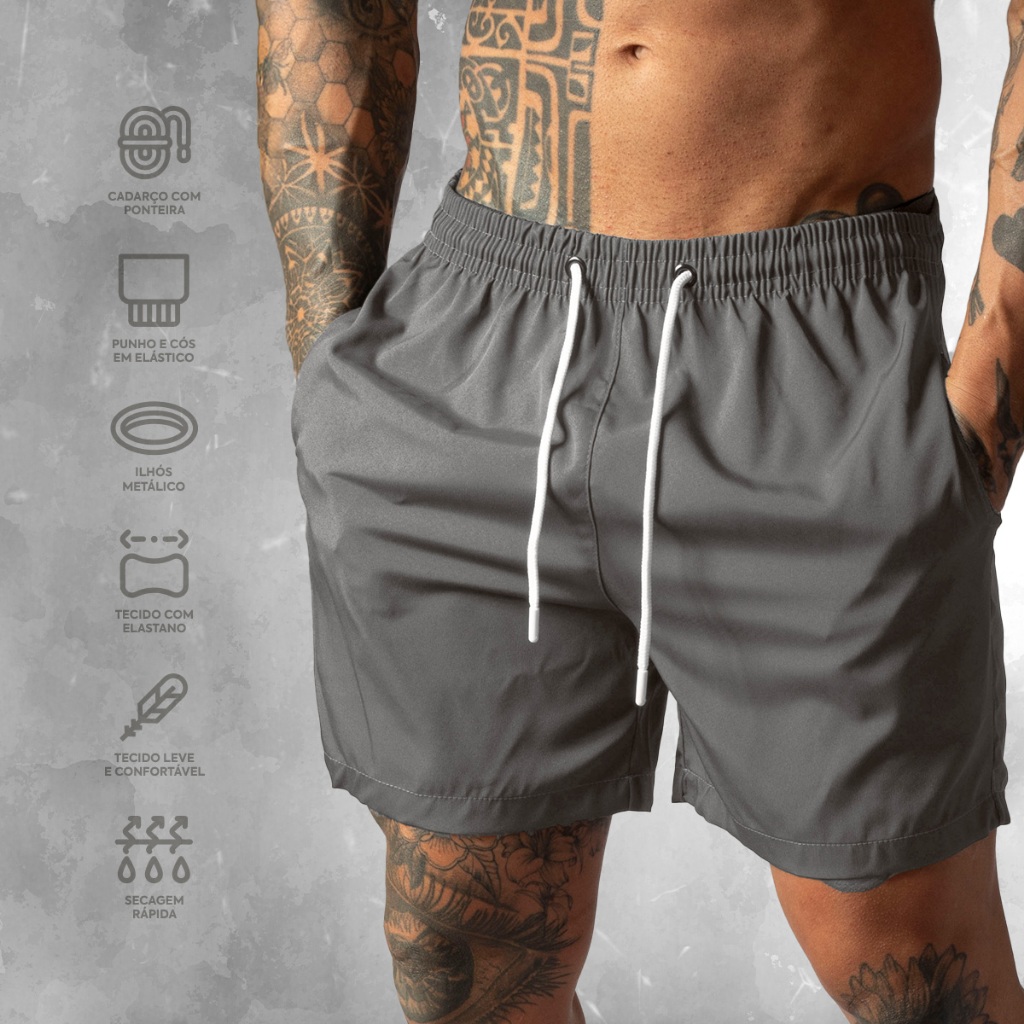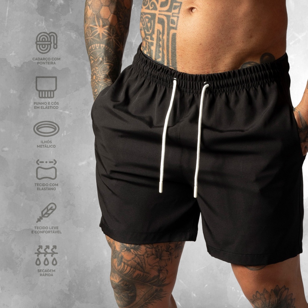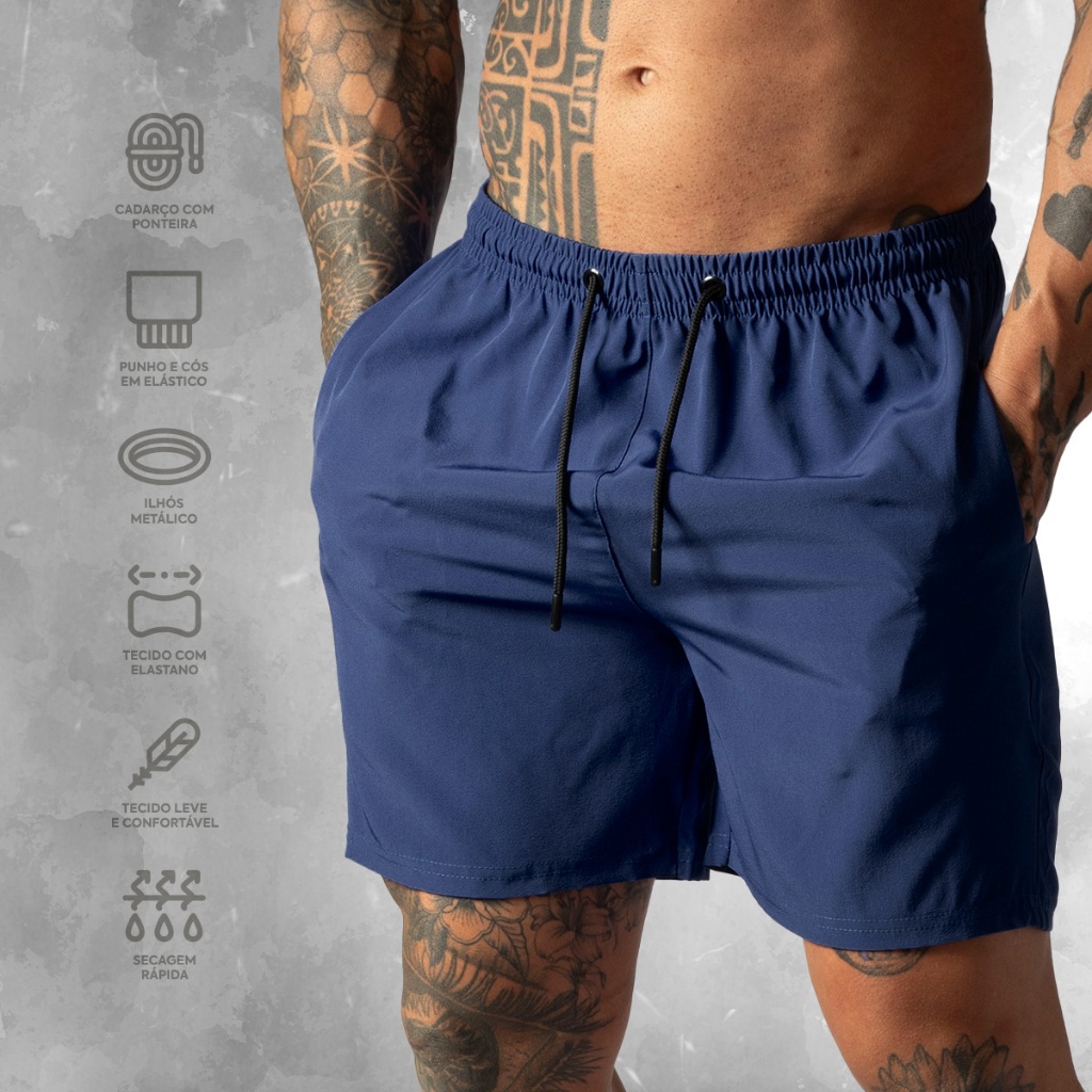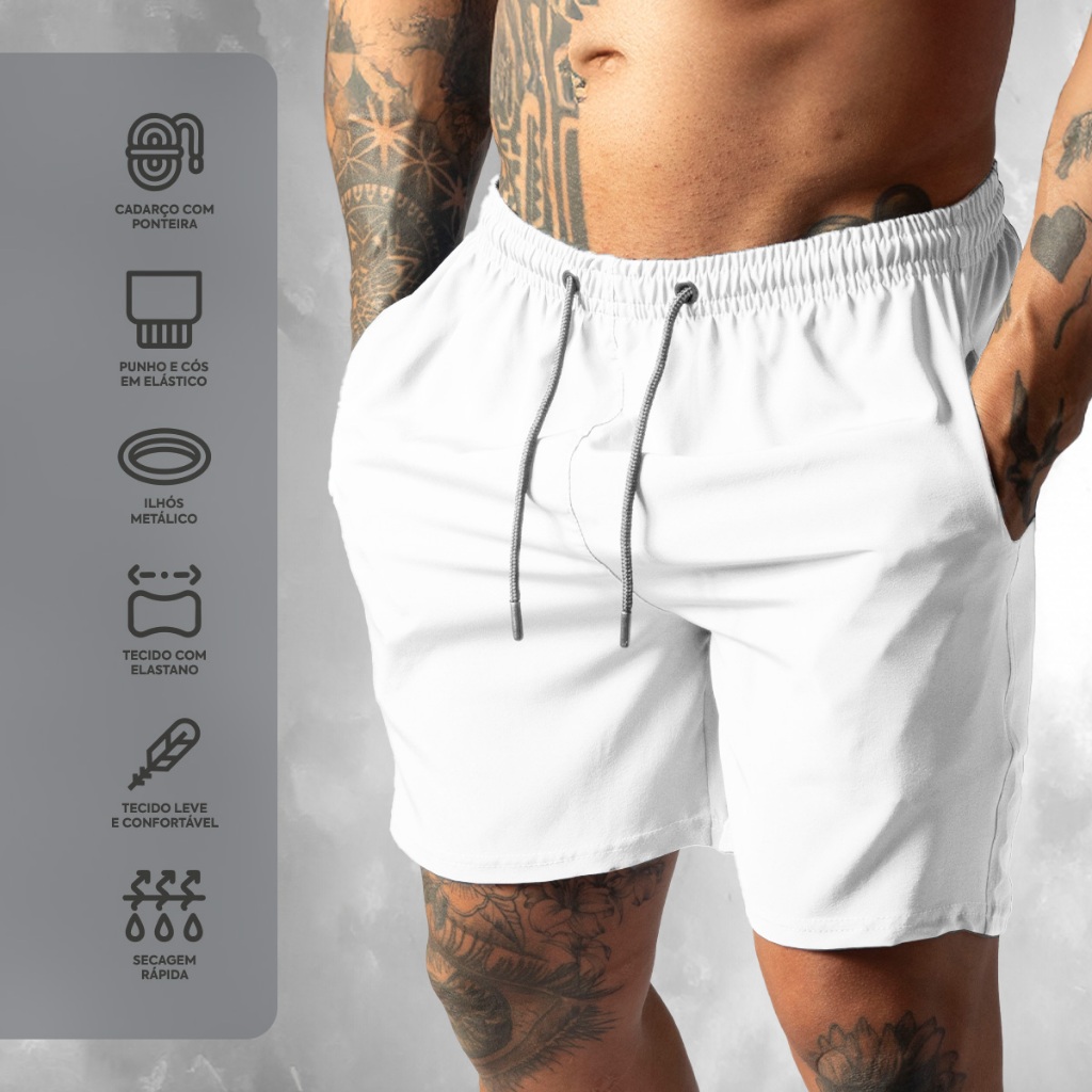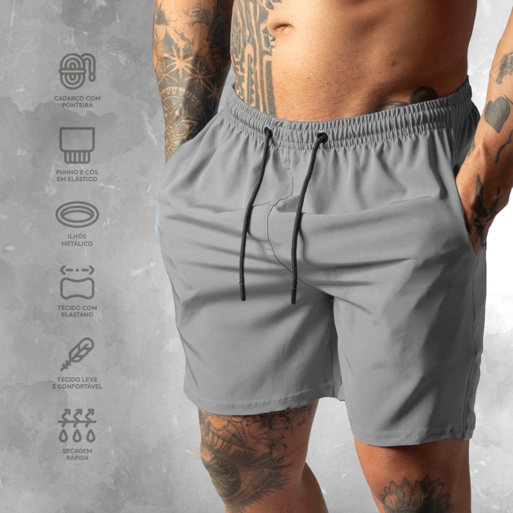 Shorts de Tactel com Elastano Masculino Basico Liso Casual Moda Praia Treino e Academia Bermuda