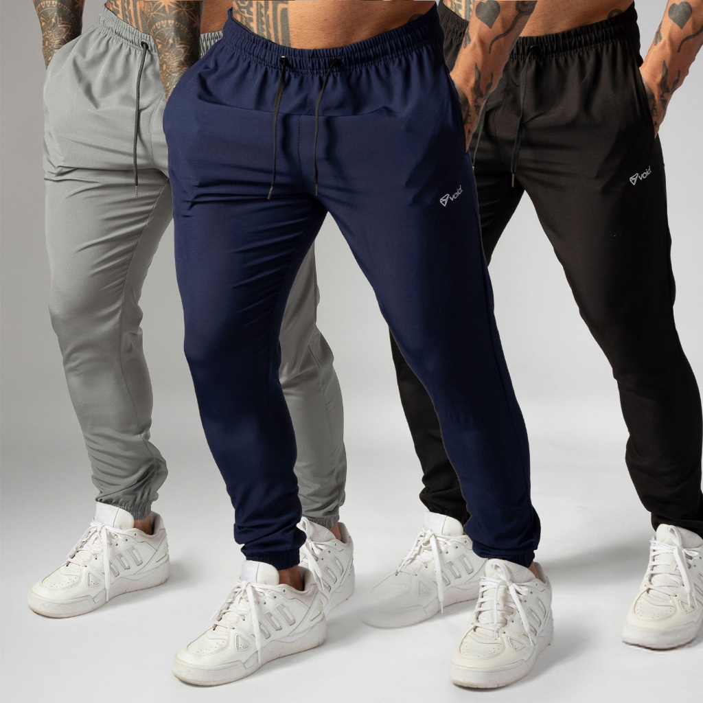 Kit 3 Calças Jogger Masculina de Tactel com Elastano para Treino Esportivo e Corrida