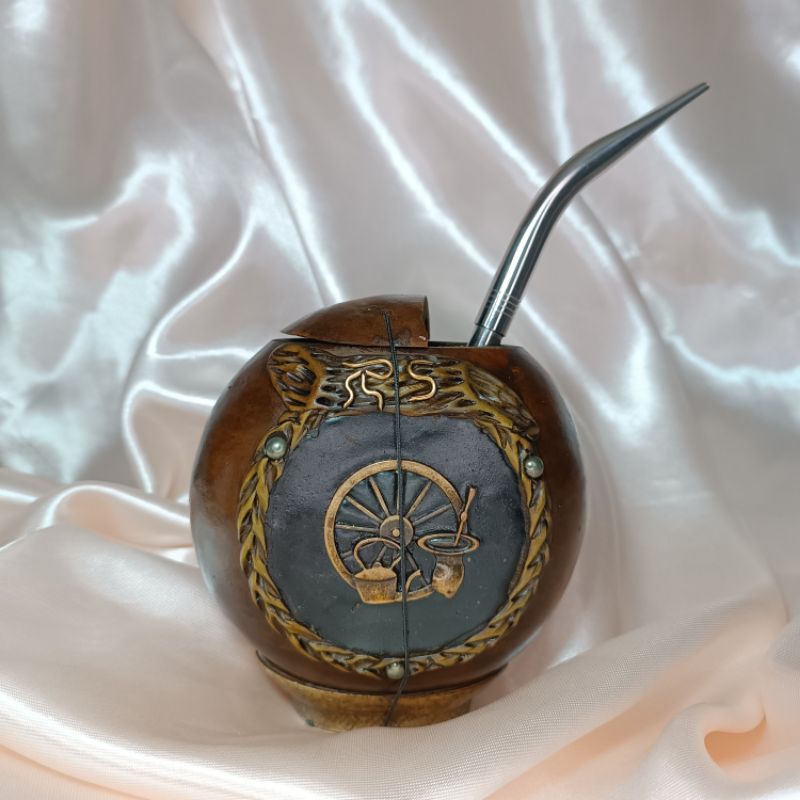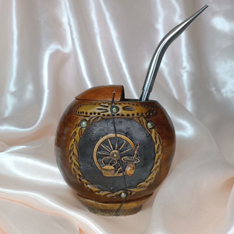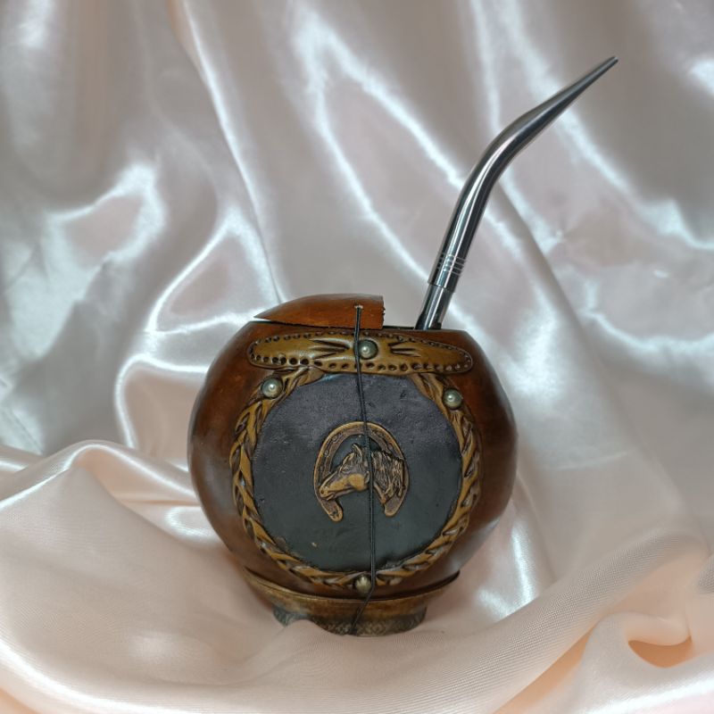 KIT Cuia de Porongo Gajeta + Bomba Bico de Louro Papagaio