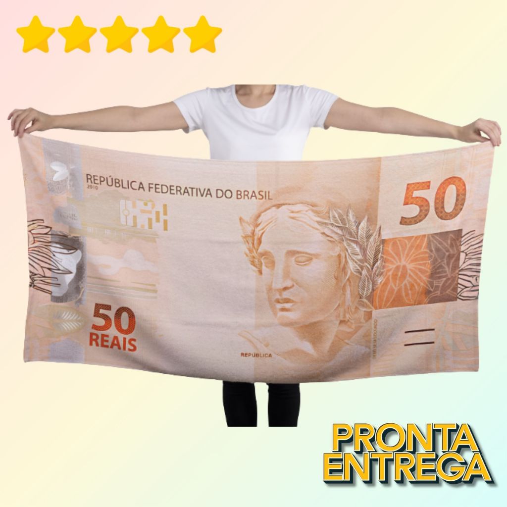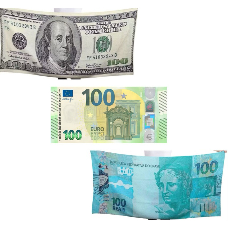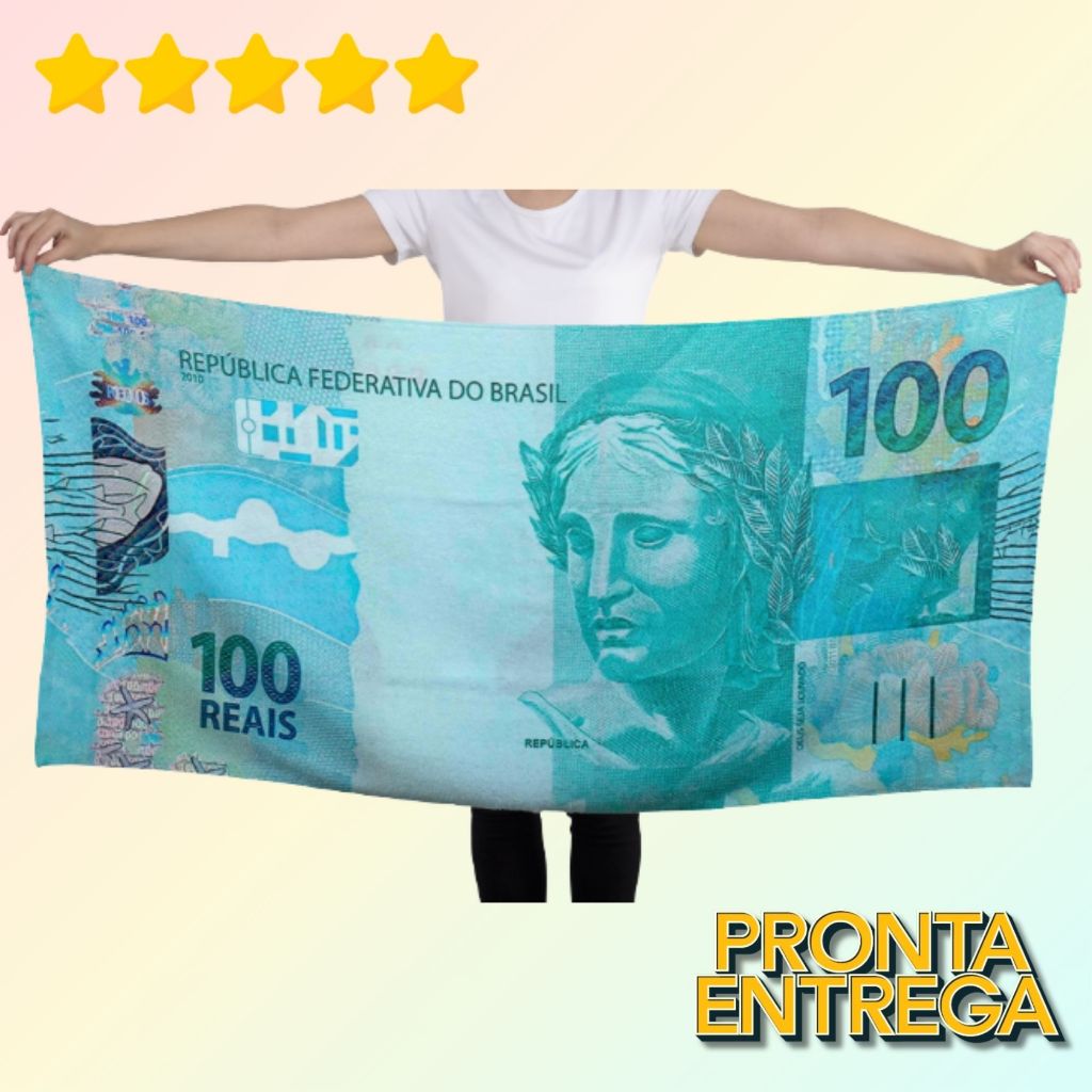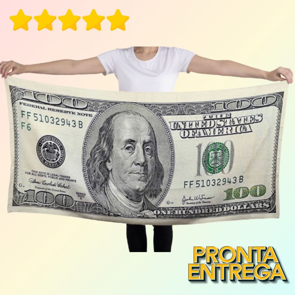 Toalha de Banho Praia e Piscina Estampa Notas 50, 100, 200, Euro, Dolar secagem rápida Alta Absorção