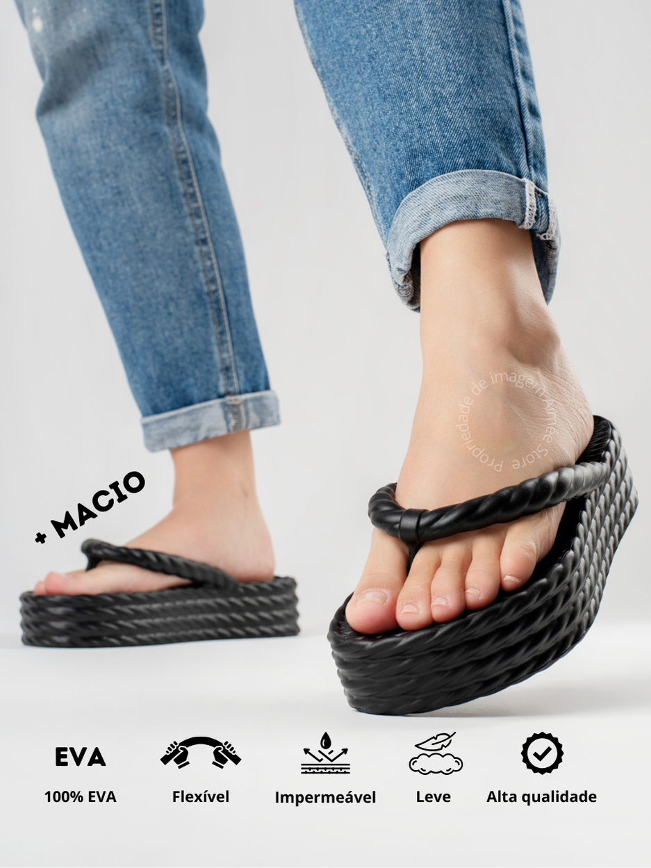 Chinelo Tamanco Sandália Feminino Nuvem Trançado Camadas Plataforma EVA Leve Macio Confortável