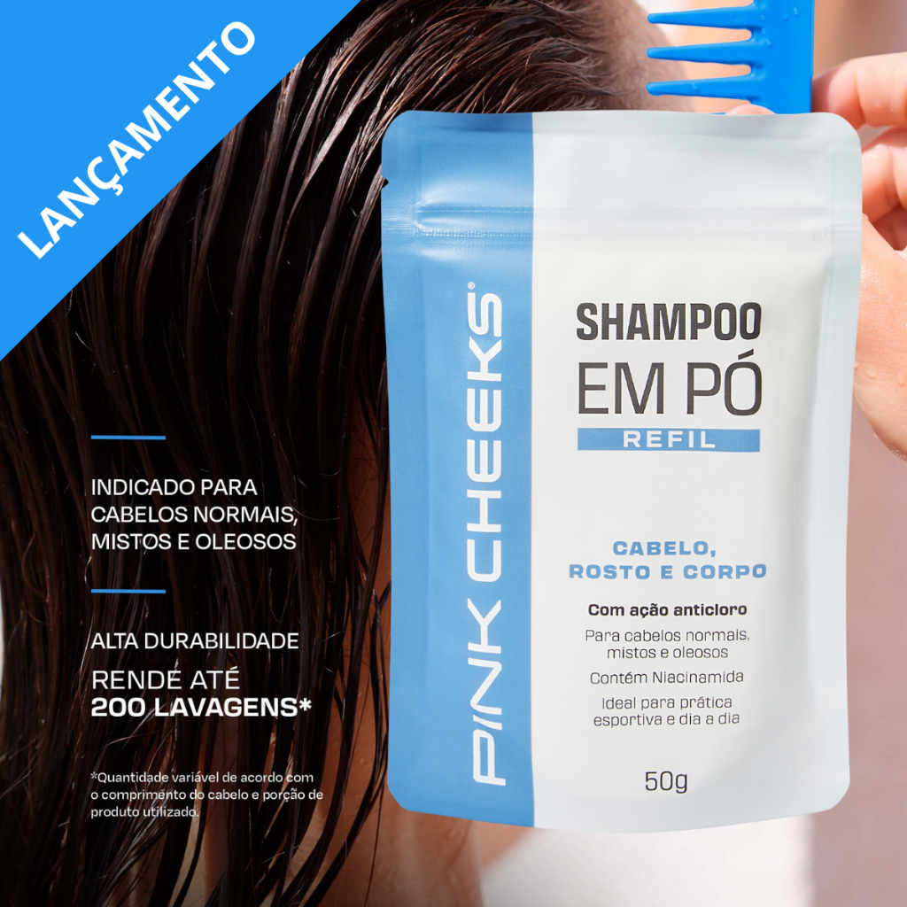 Refil Shampoo Multifuncional 3 em 1 PINK CHEEKS em Pó 50g