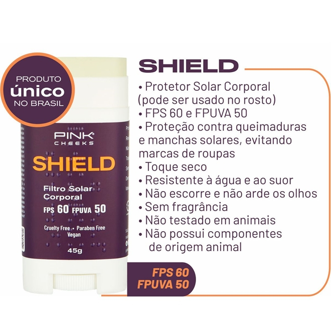 Filtro Solar Protetor Solar FPS60 Em bastão incolor PINK CHEEKS promoçao