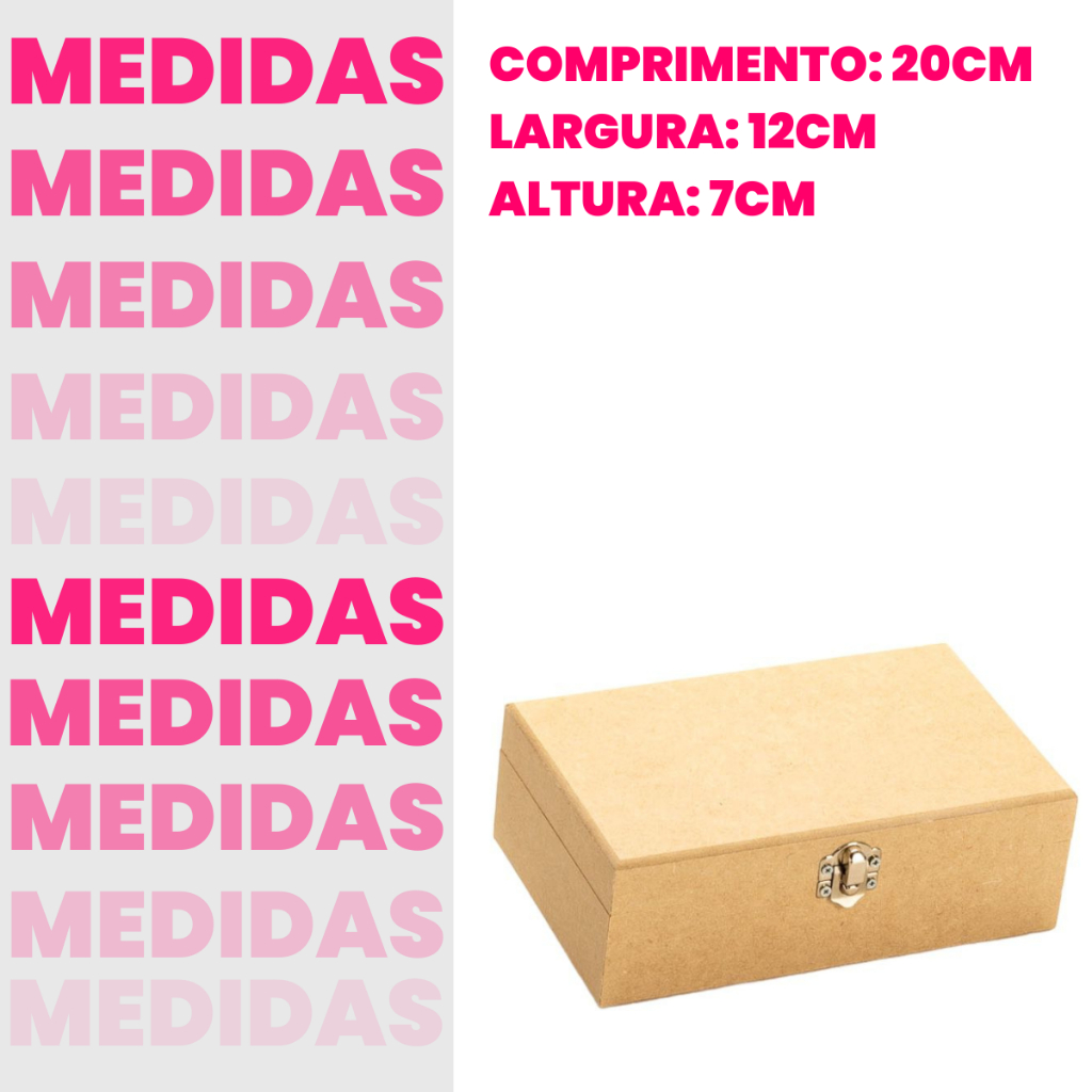 Caixa lisa em mdf cru com fecho e dobradiça 20x12x7