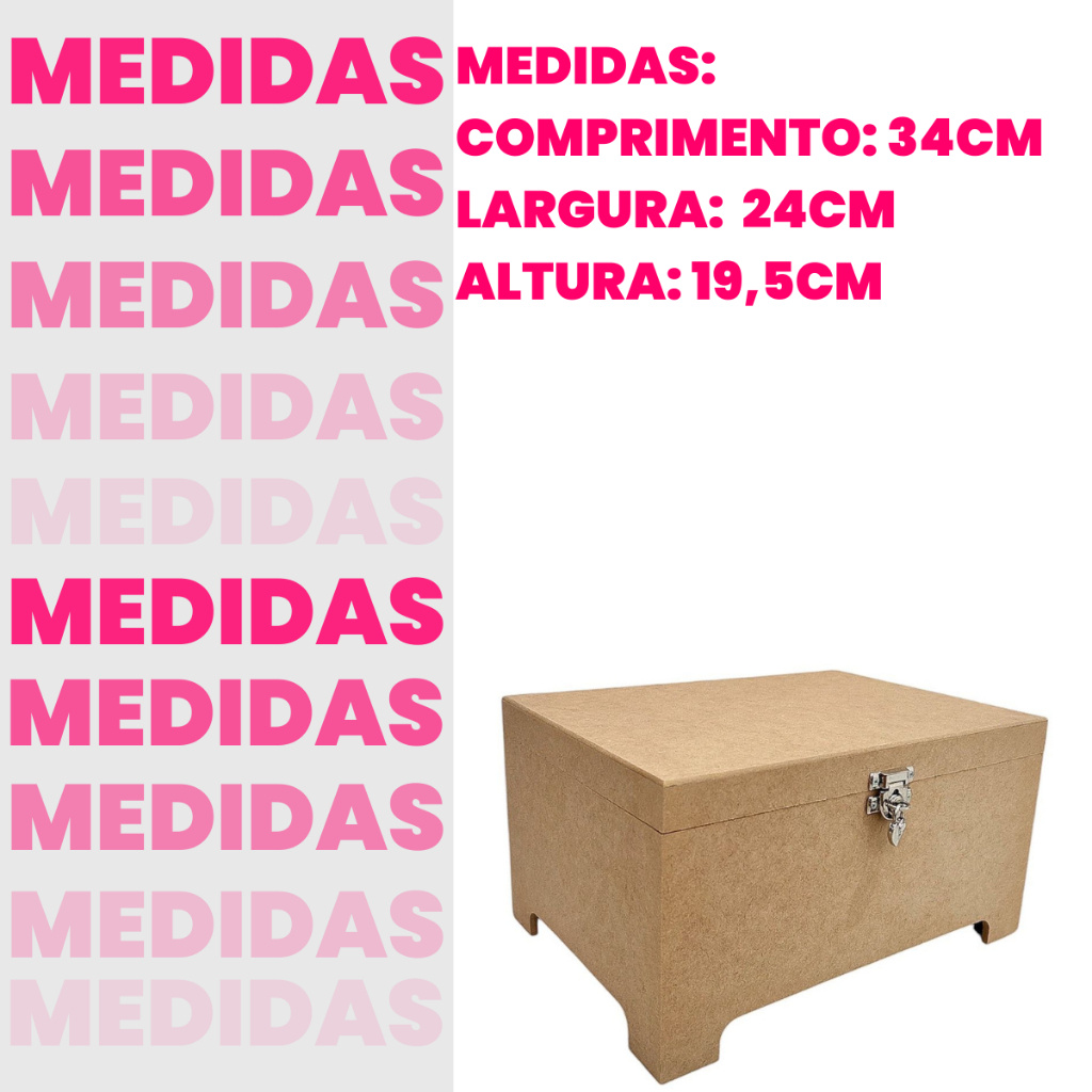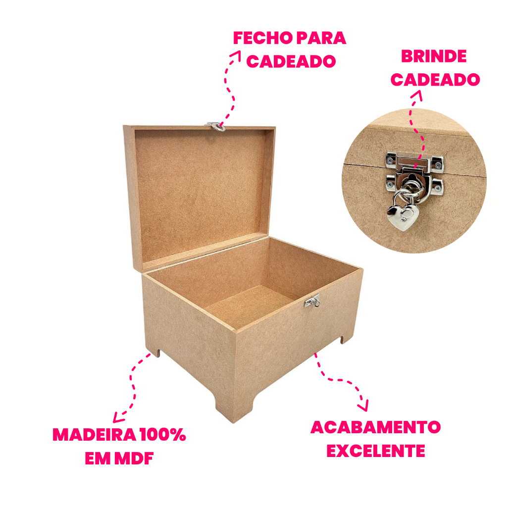 bau caixa organizador mdf grande com fecho para cadeado com brinde cadeado