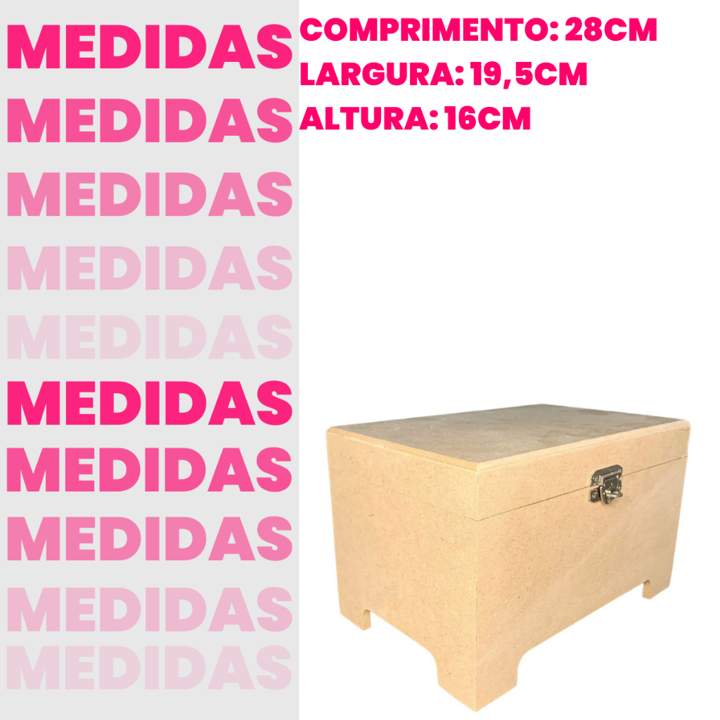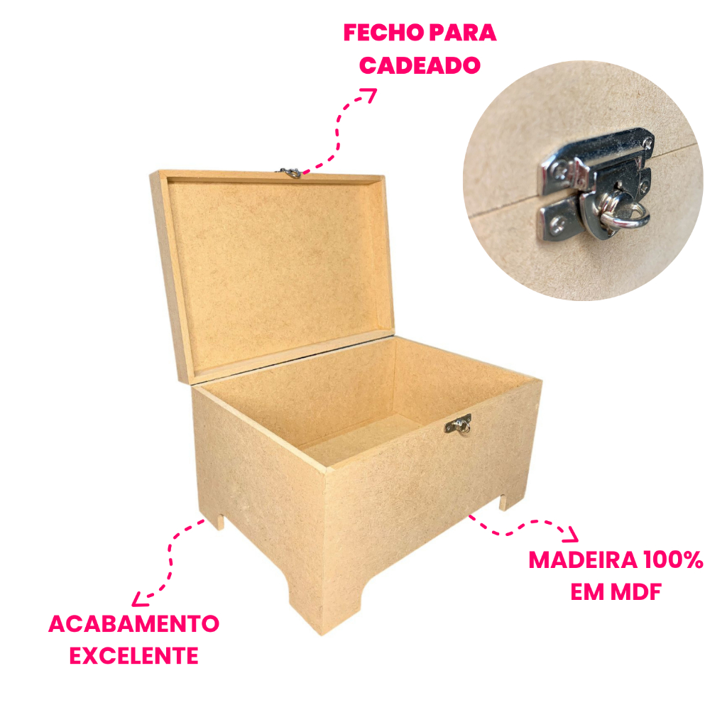 Caixa baú M em mdf cru com fecho para cadeado