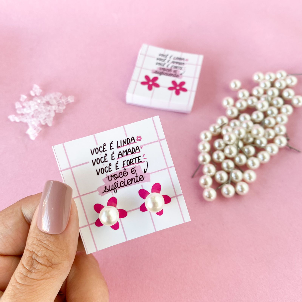 50 Pares de Brinco de Perola + tag Mimo para cliente