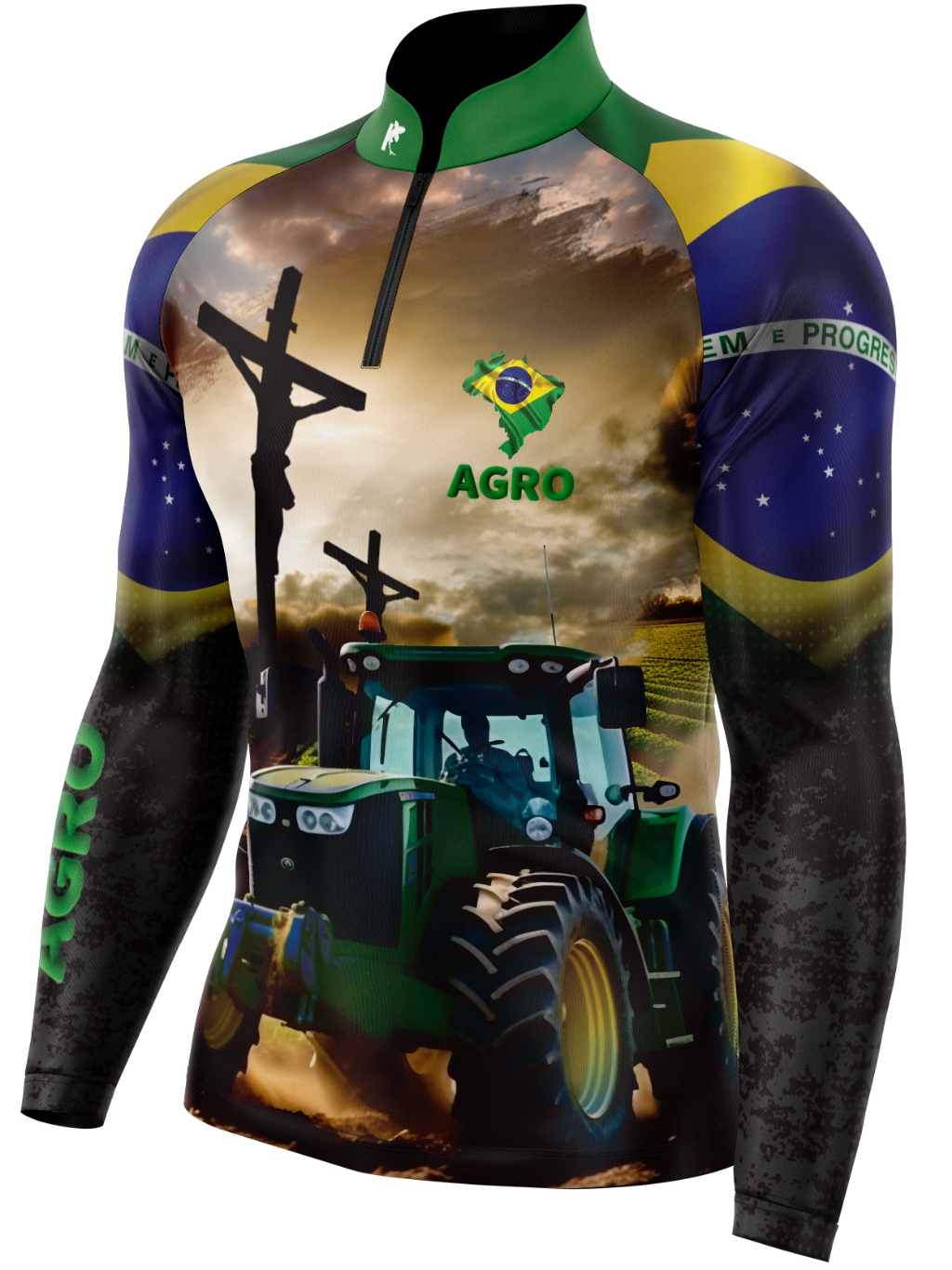 Camiseta Camisa Blusa Agro Brasil Cruz Trator Com Zíper Proteção Uv50+
