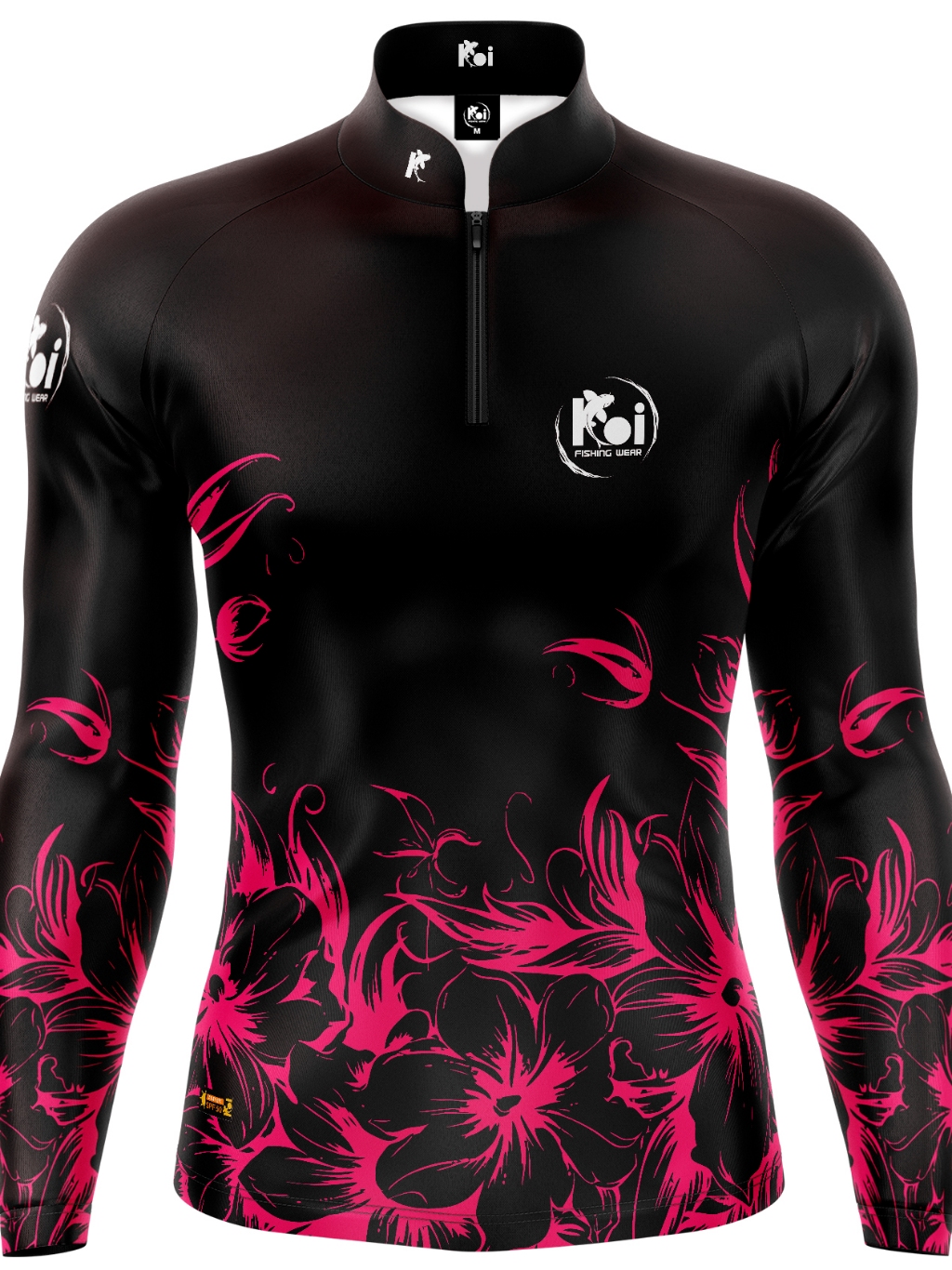 Camiseta Camisa Blusa Agro Pesca Medalha Floral Rosas Com Zíper Proteção Uv50+