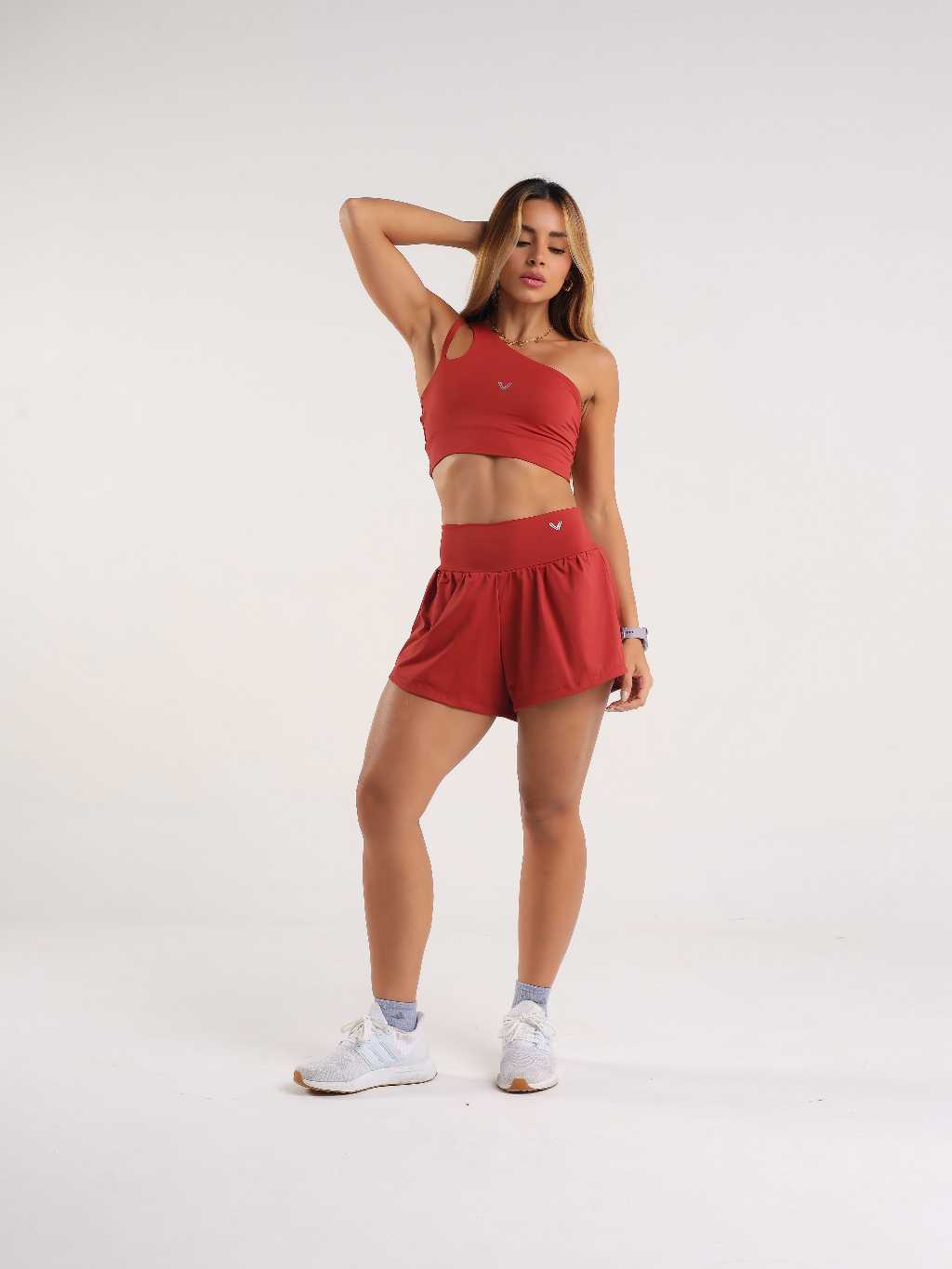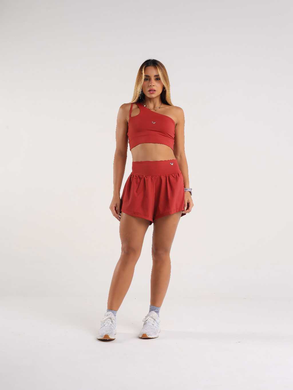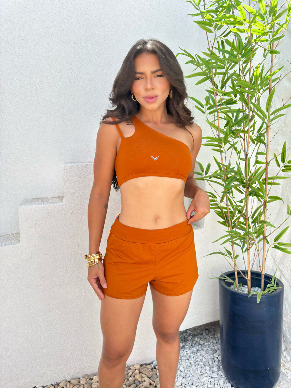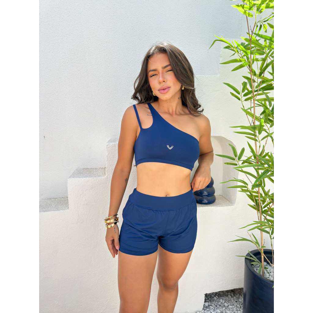 Conjunto feminino fitness com short duplo e top com bojo removivel Manu