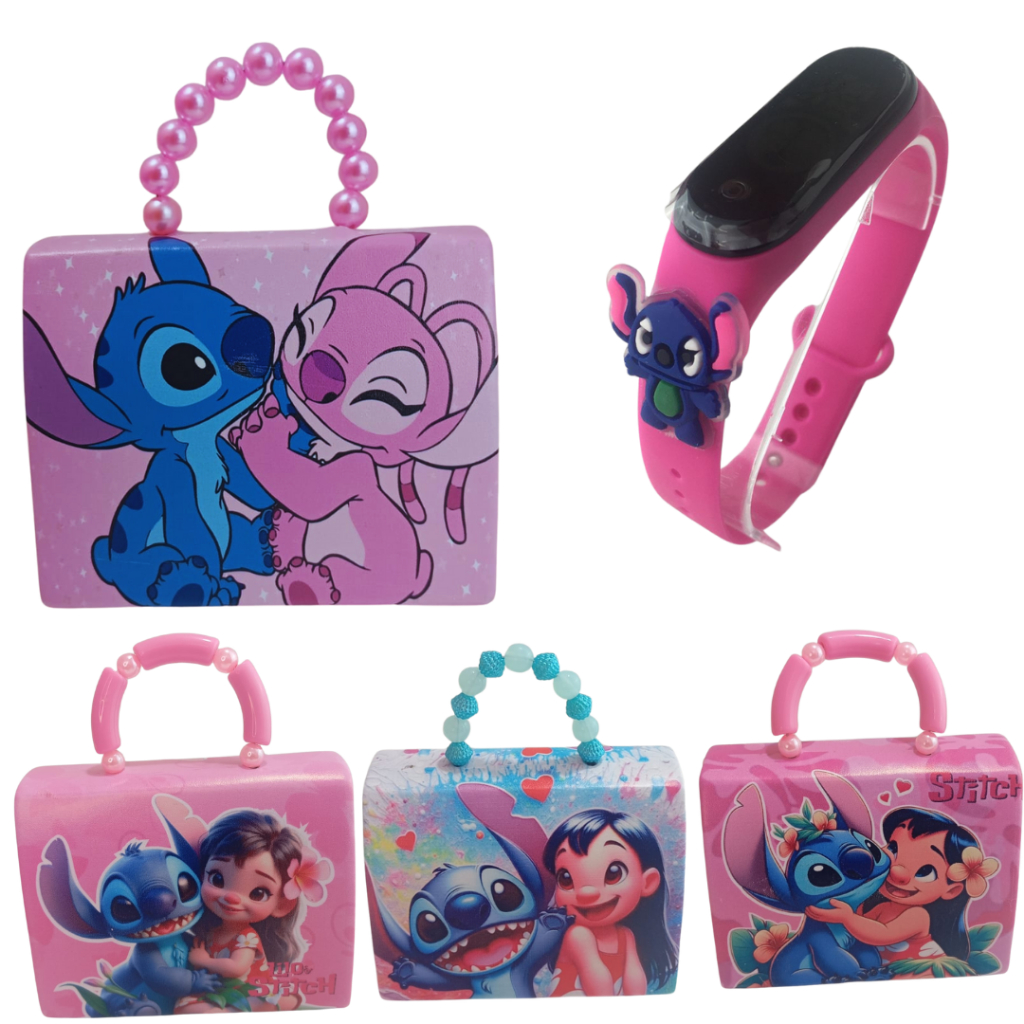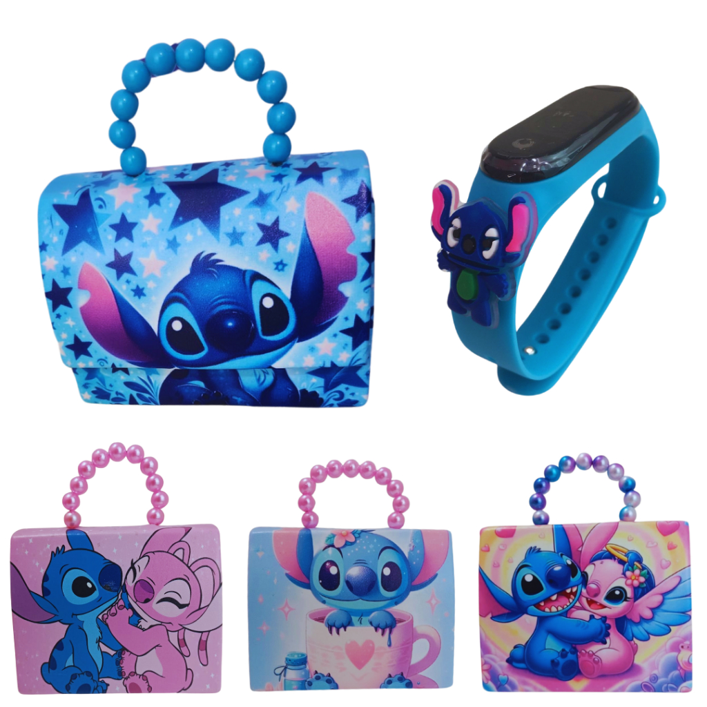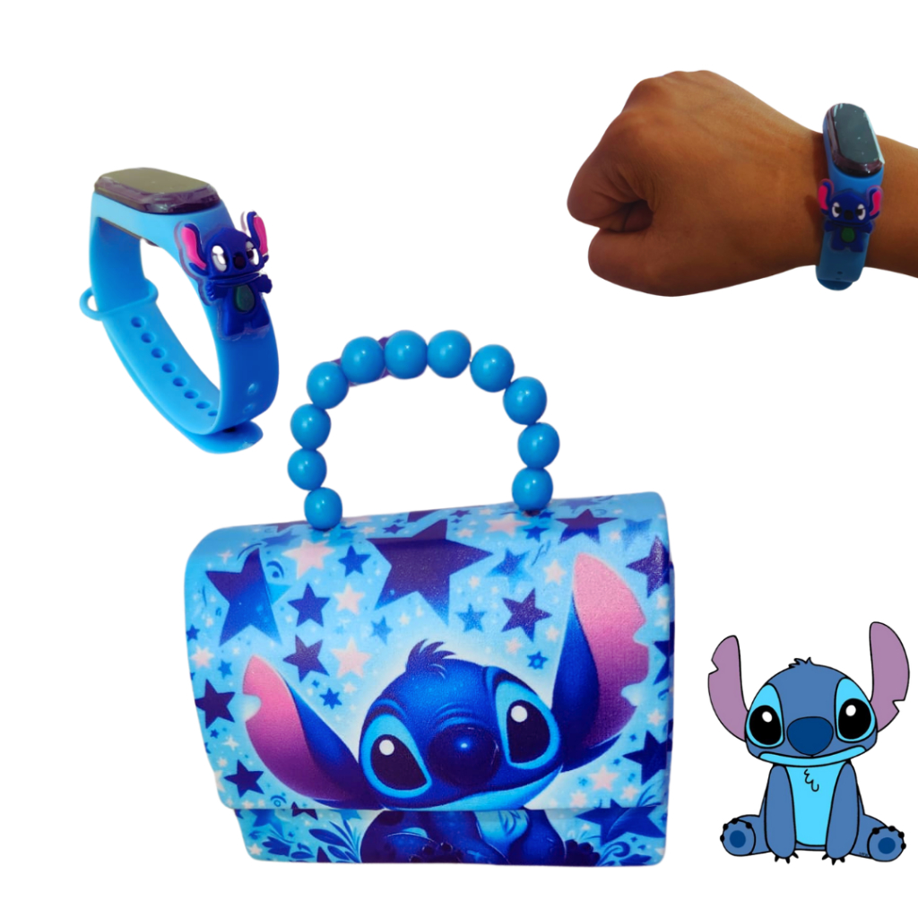 Relógio Infantil Digital Stitch com Bolsa Menina Feminina Disney