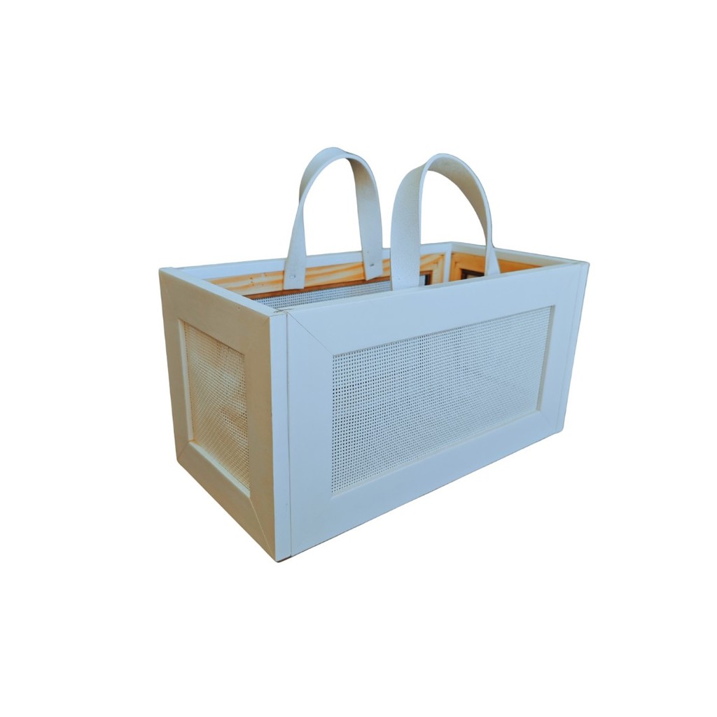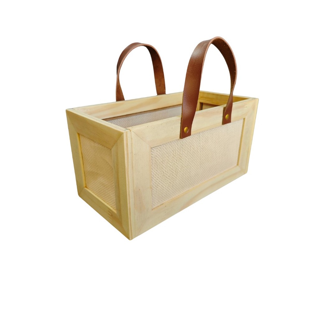 CESTA EM MADEIRA PINUS BOLSA ALÇA COURO (103)- CESTA PRESENTE DECORAÇÃO, CESTA NATAL- PRONTA ENTREGA