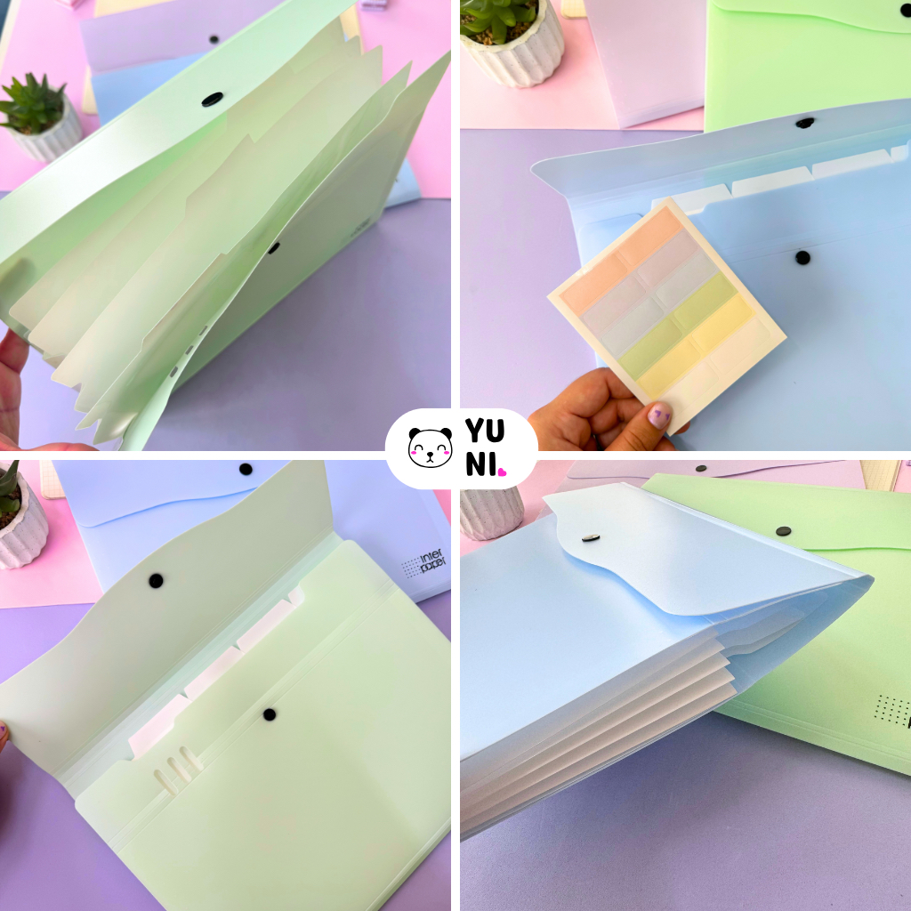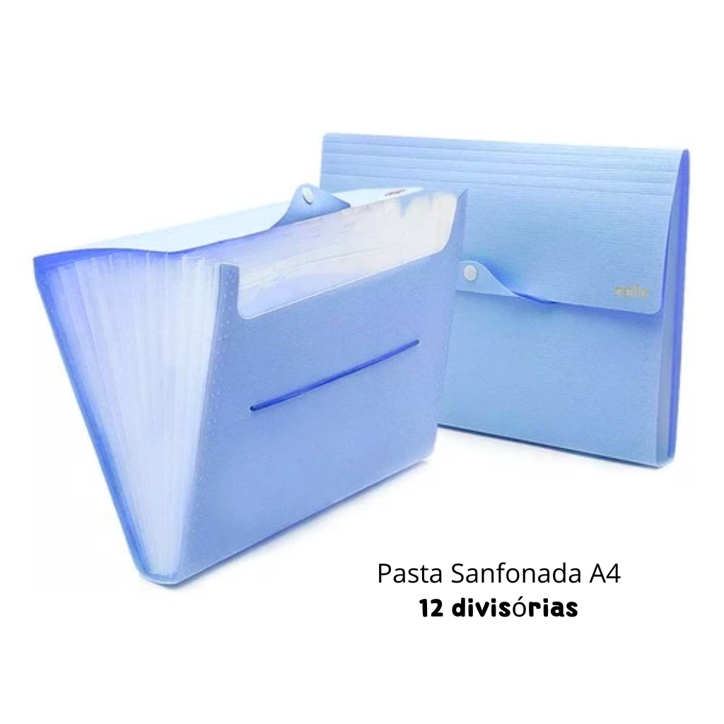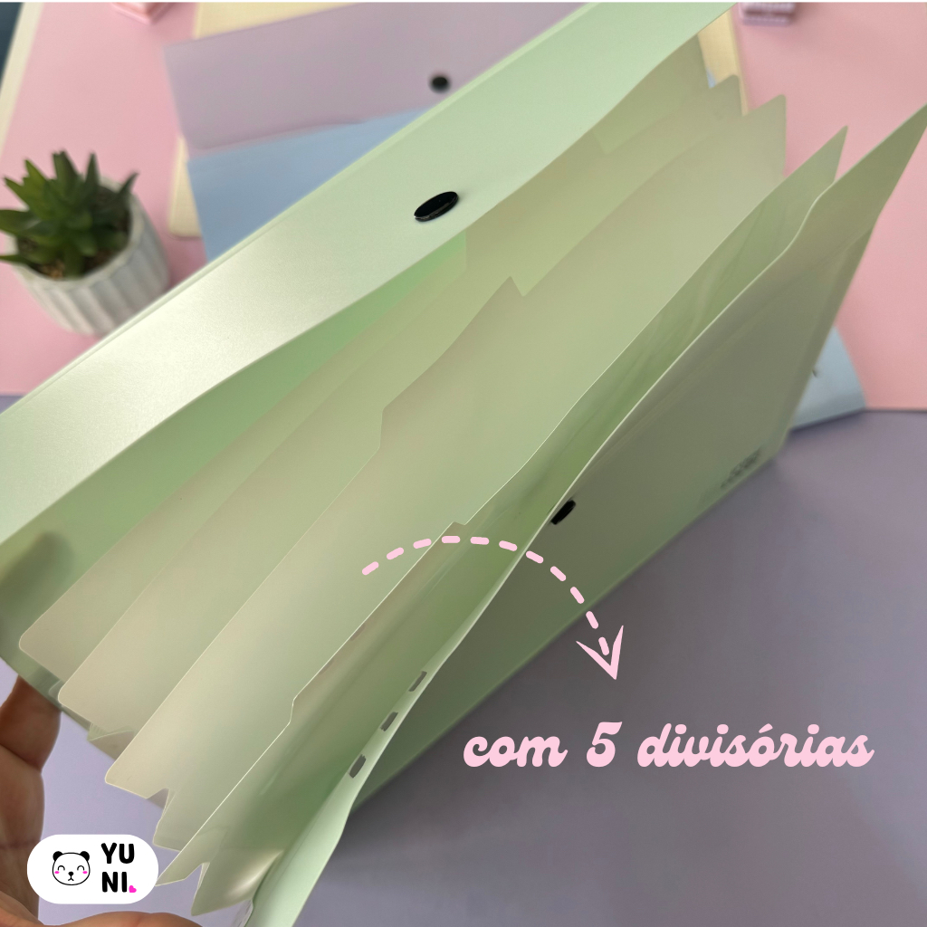 Pasta Arquivo A4 Pastel com 5, 8 e 12 Divisórias - Pasta Sanfonada A4
