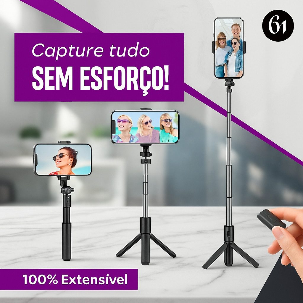 Tripé para Celular 1.70m Grande e Compacto Regulável Alumínio Suporte Bastão Pau de Selfie