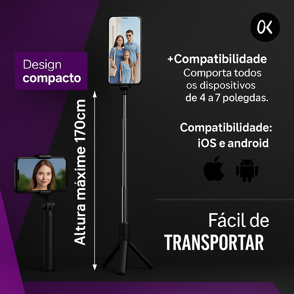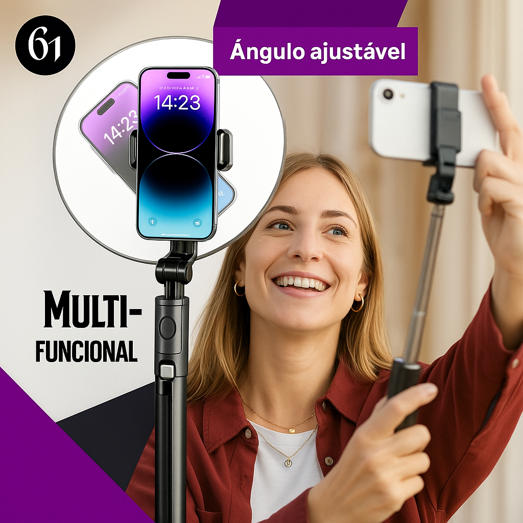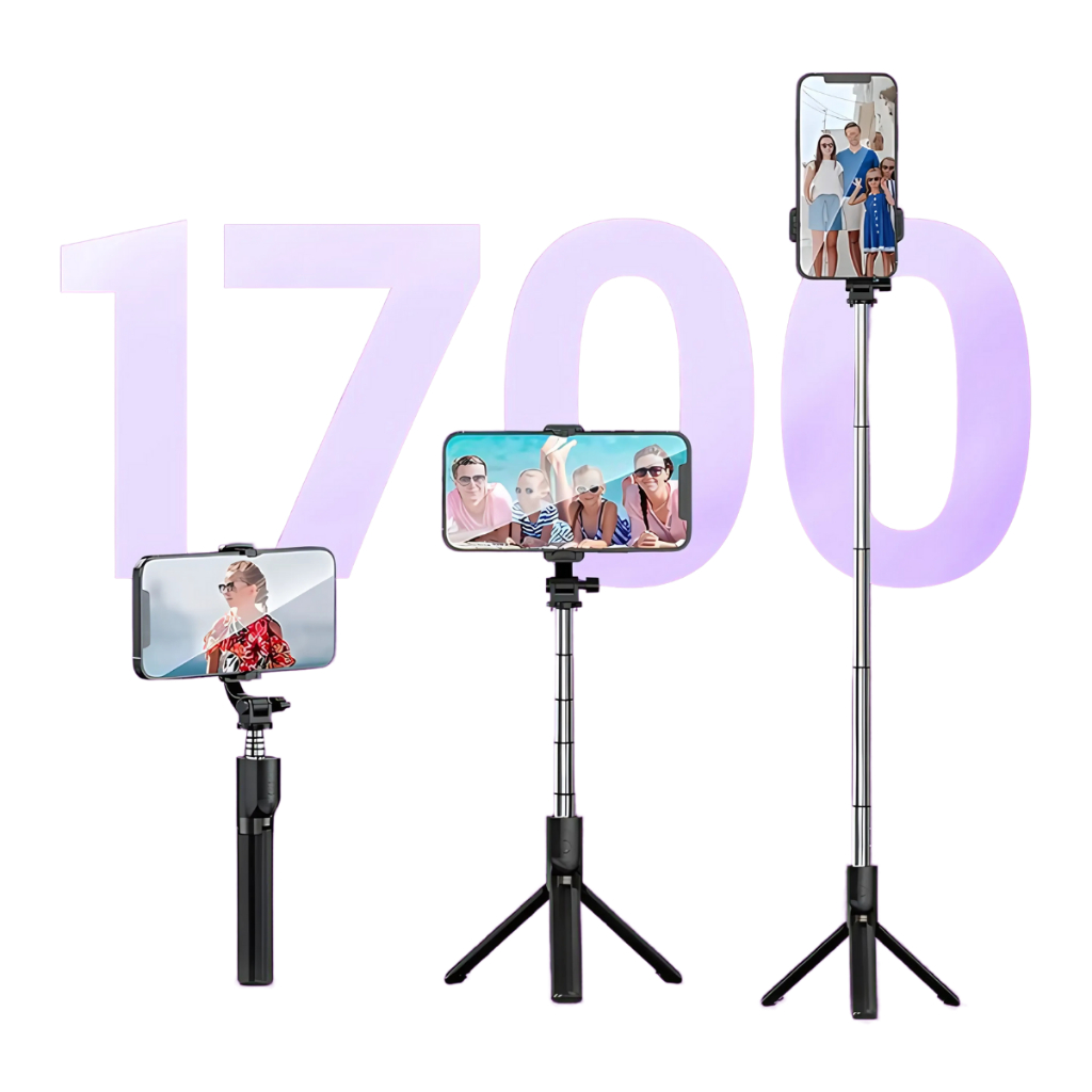 Tripé Celular Retrátil 1.70m Regulável Alumínio Profissional Suporte Bastão de Selfie