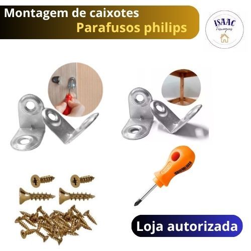 Kit 100 ou 50 Cantoneira Parafusos Cadeirinha 2 Furos Montagem de Móveis