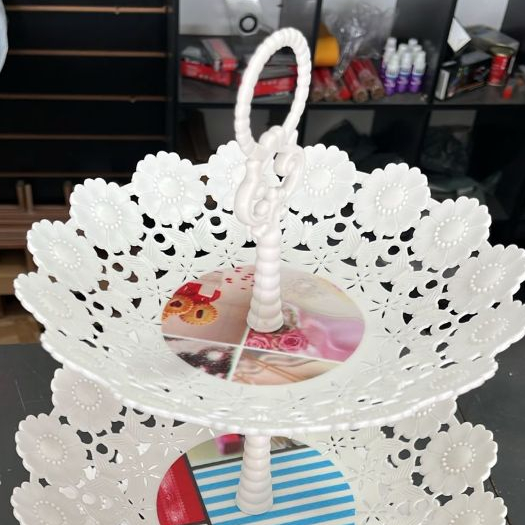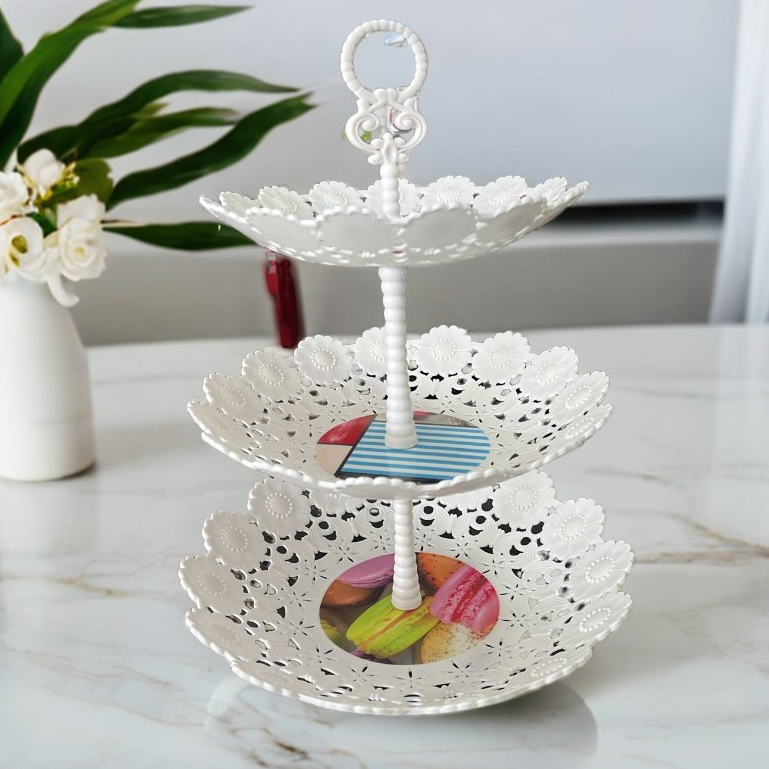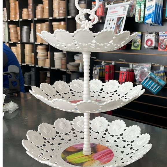 Fruteira Cesto de Mesa Prato 3 Andares Organizador Redondo Branco