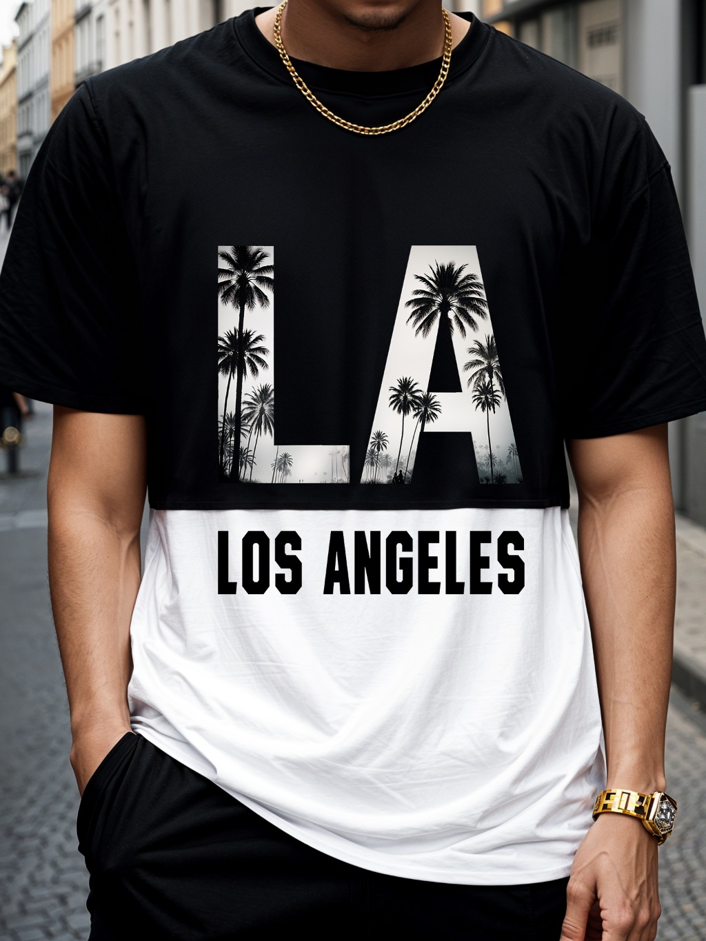 Camiseta Masculina Los Angeles Recortada T-Shirt 100% Algodão Manfinity Street Wear