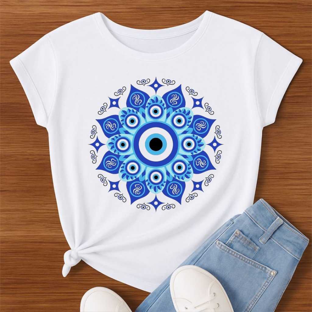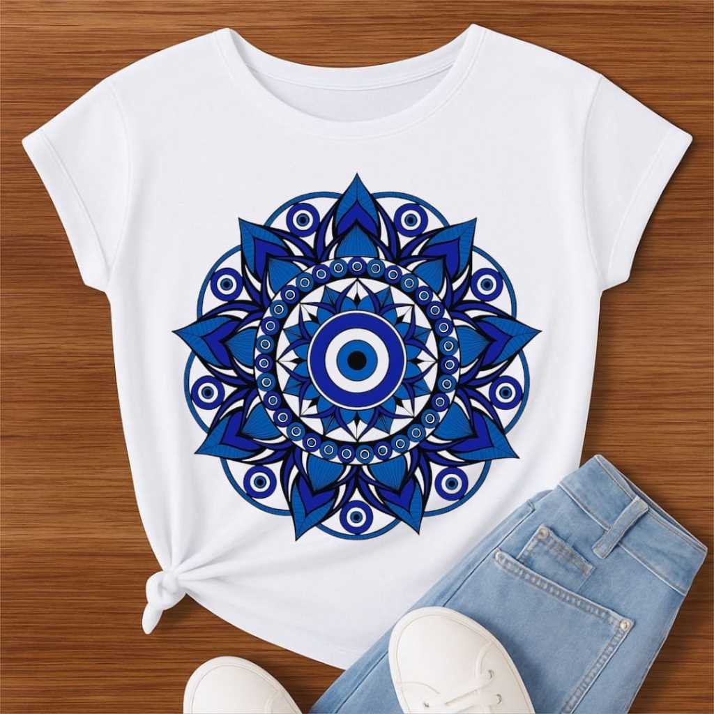 Camiseta Olho Grego Mandala Proteção Estampa Azul – Feminina/Proteção/Espiritualidade