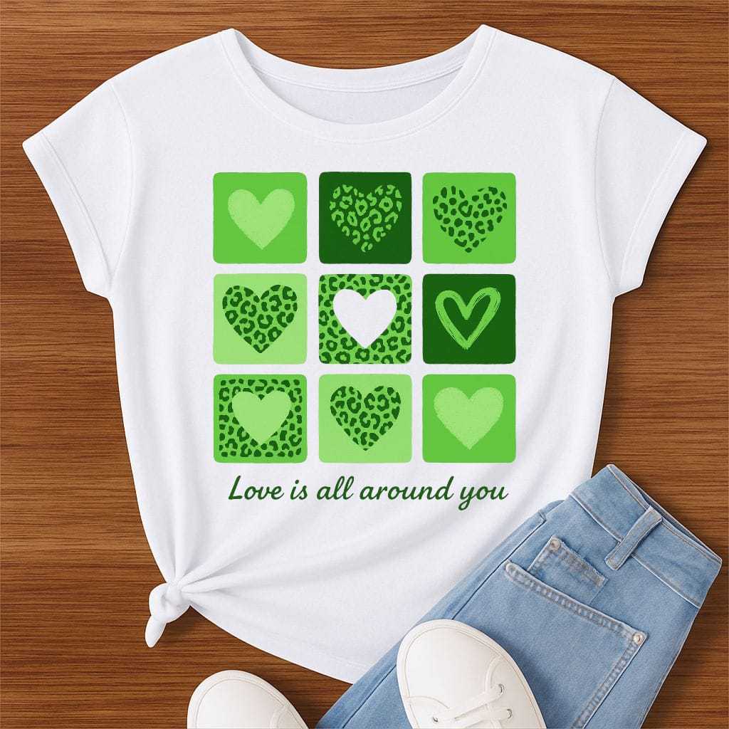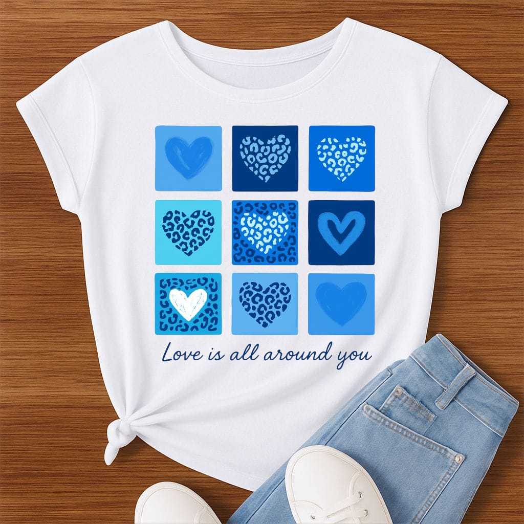 Camiseta Feminina Estampa Corações Animal Print – “Love is all around you”