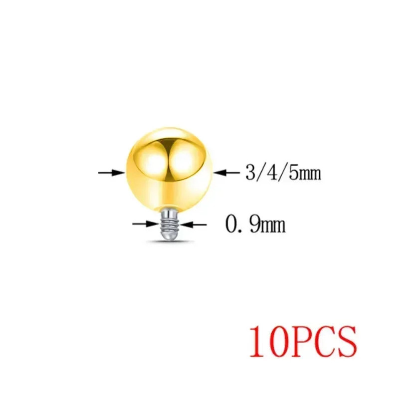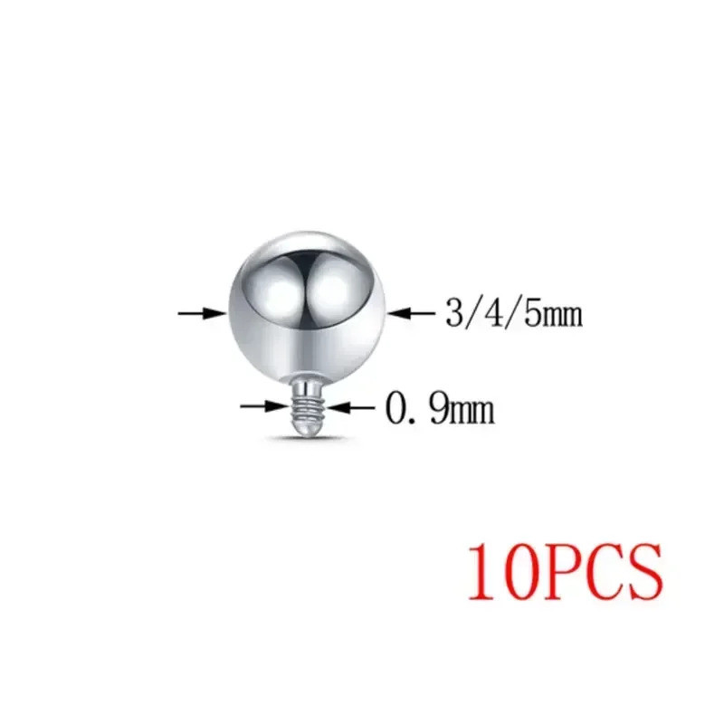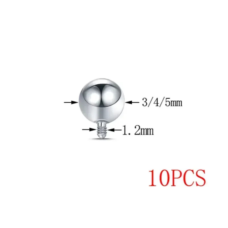 10pcs Piercing Titanium Bola 3/4/5mm para 14G 16G Rosca Interna Barbell Espelho Polido
