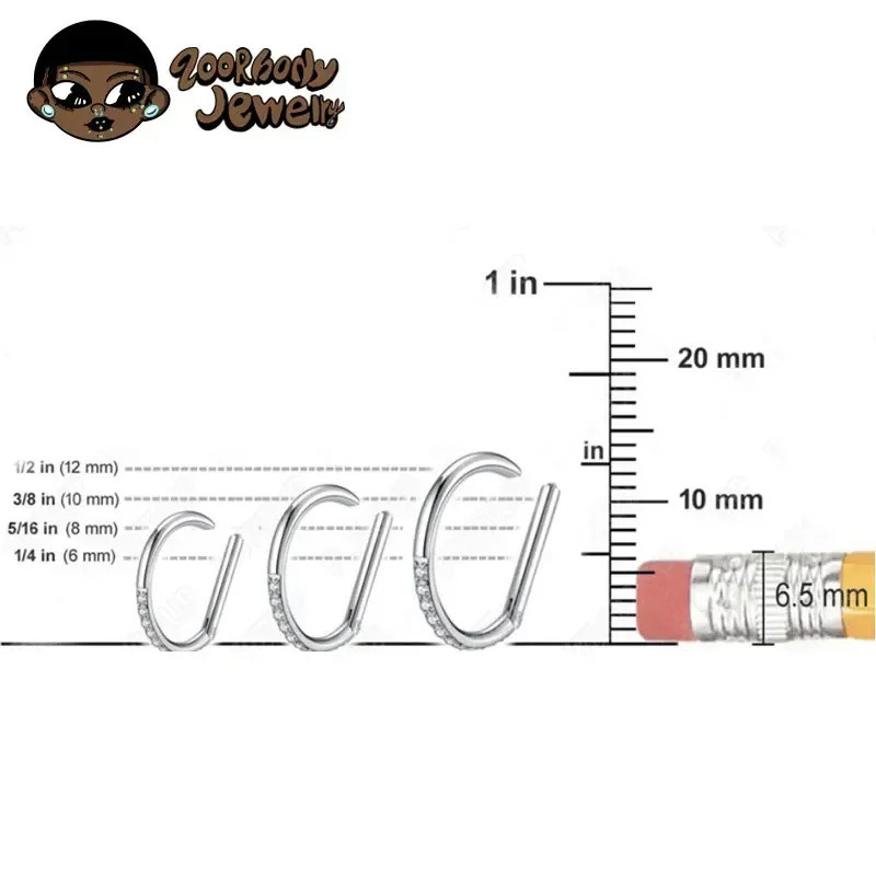 Piercing Titânio G23 Rook Conch Nariz Meia Argola Titânio Pvd Segmento Articulado Zircônia