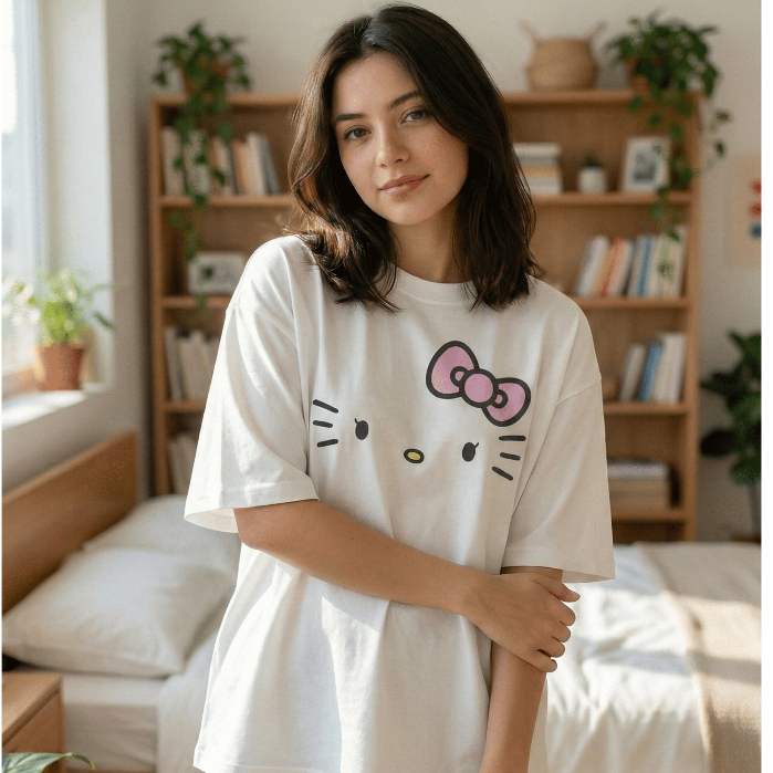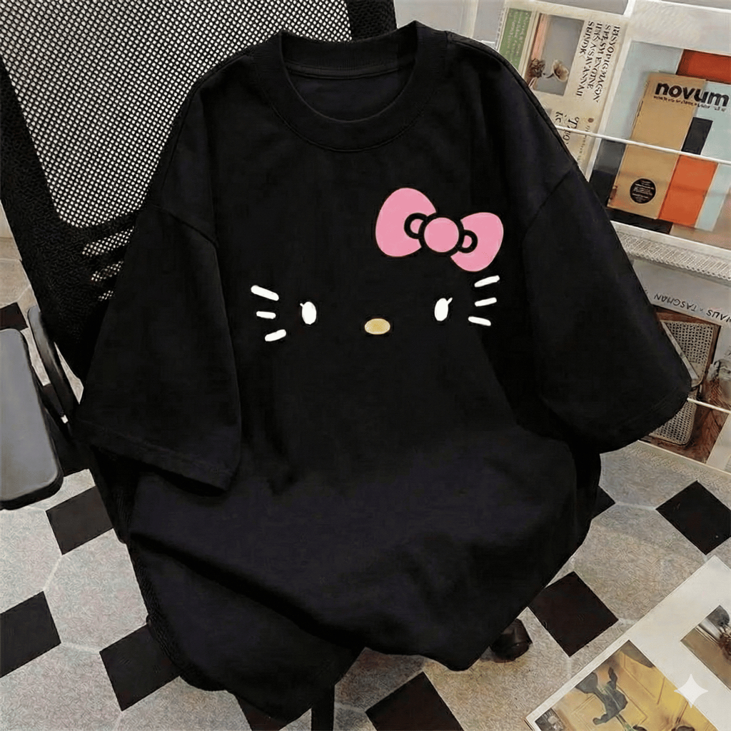 Camiseta Oversized Hello Kitty Carinha Streetwear 100% Algodão Premium Plus Size