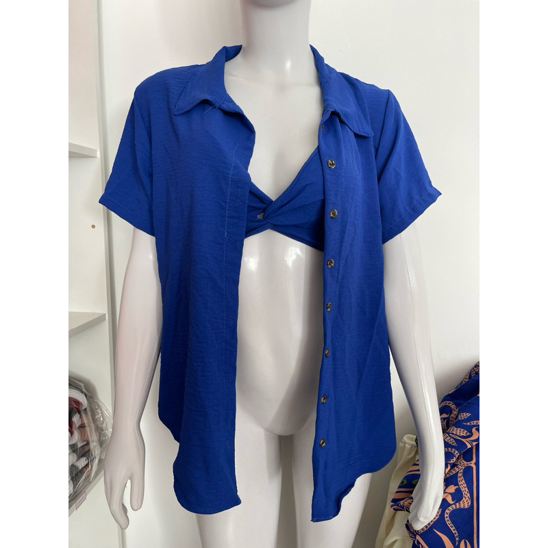 Conjunto Feminino Tecido Duna: Cropped com Alça Regulável + Camisa Manga Longa