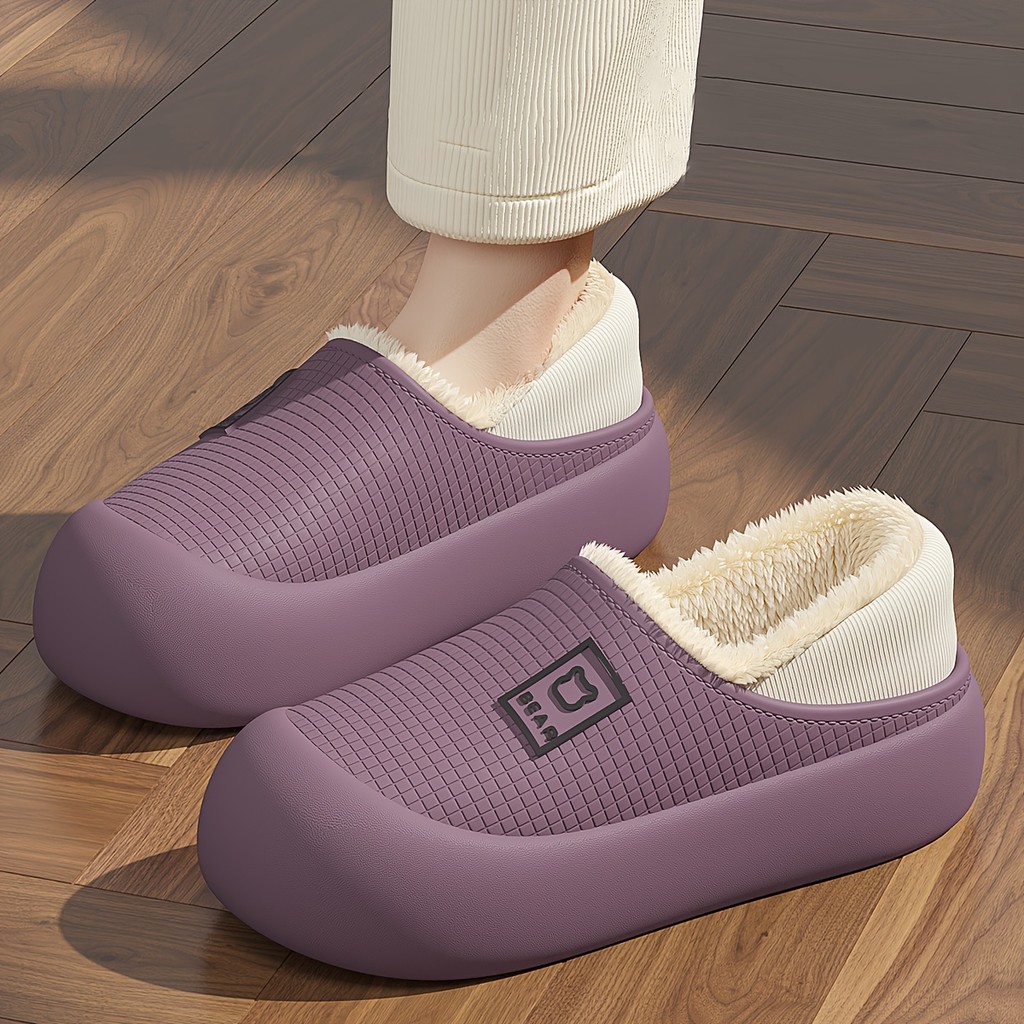 Chinelos confortáveis femininos - Material EVA macio com forro de pelúcia, adequado para inverno interno confortável