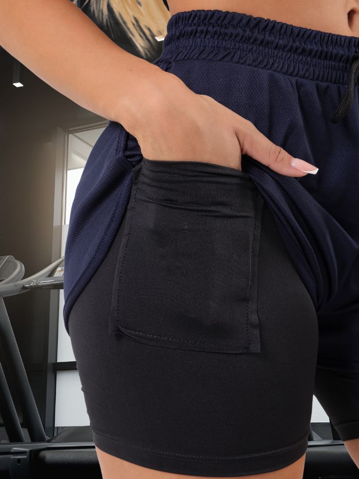 Short Duplo Compreensão Fitness Bermuda Academia Feminino 2 em 1