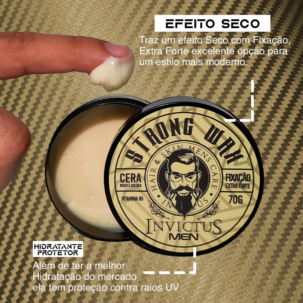 Cera Modeladora Para Cabelos Strong Wax - Efeito Seco Fosco Mega FIxação Invictus Men 70g