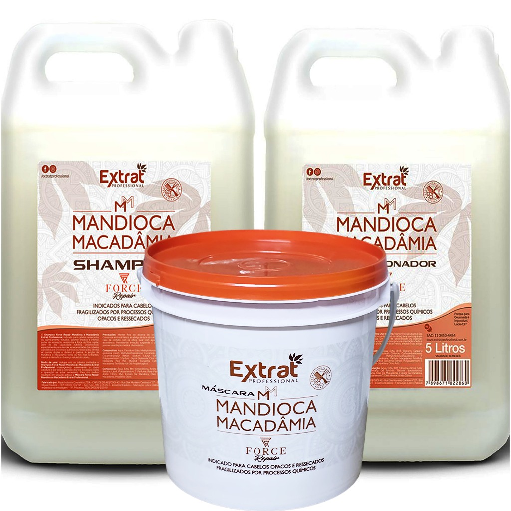 Kit Shampoo 5Lt / Condicionador 5Lt / Máscara Force Repair 2 Kg- Linha Lavatório Extrat Professional