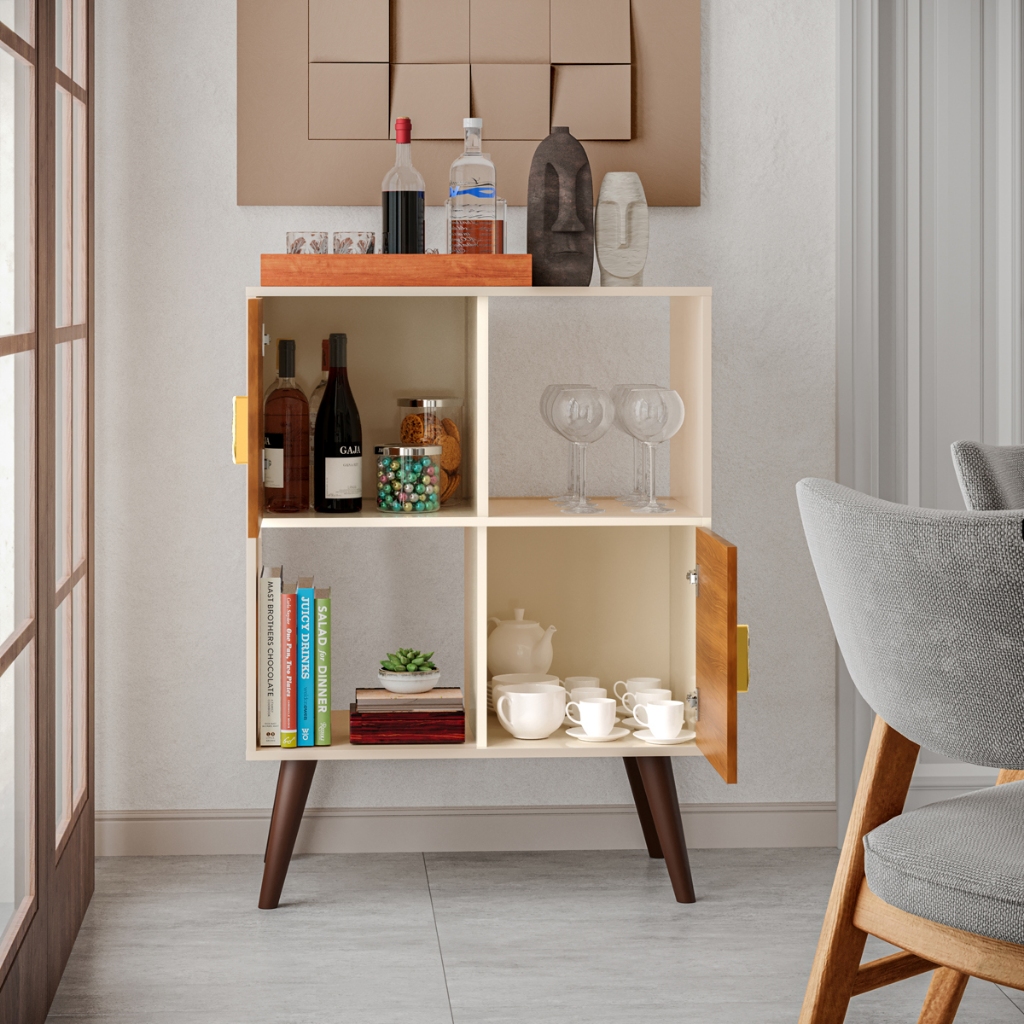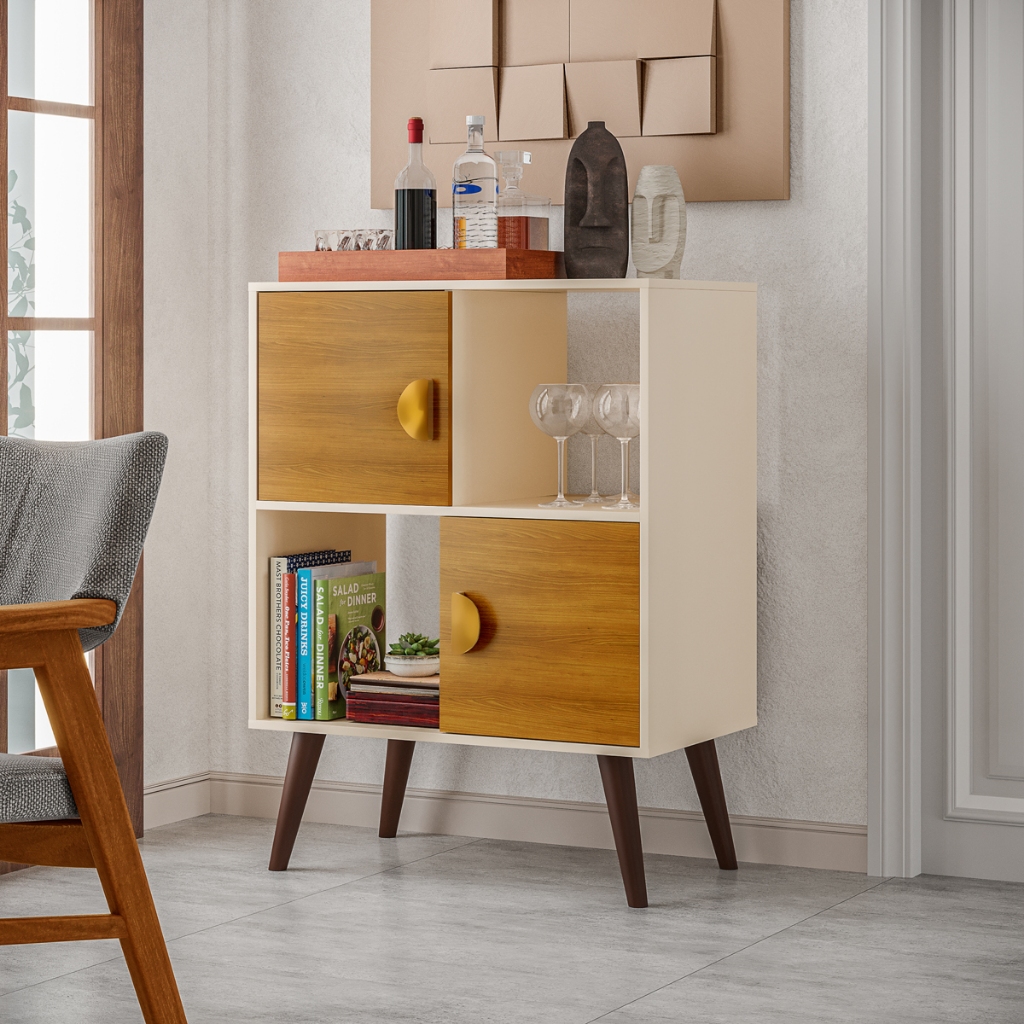 Aparador Barzinho Buffet Cantinho do Café Compacto com 2 Portas Pés Palito Retrô Sala Cozinha