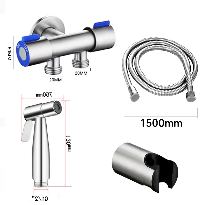KIT Registro com Dupla Saída de Água, Ducha Higiênica Cores Prata