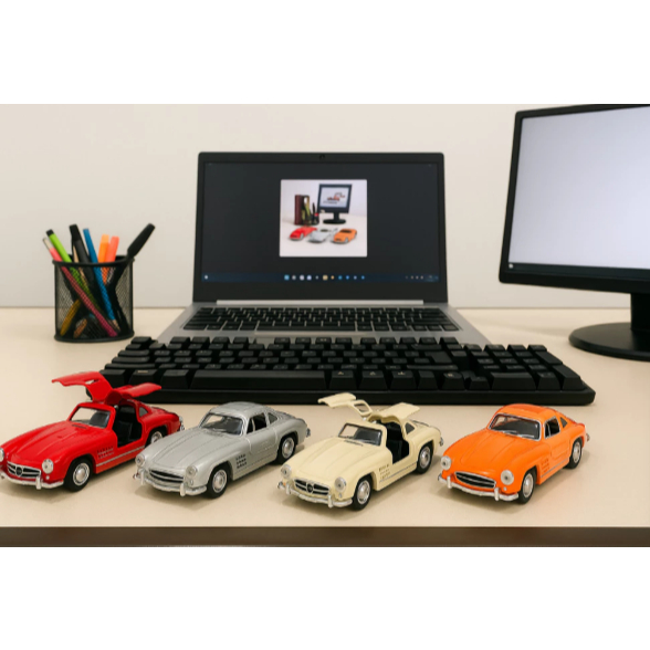 Carro Miniatura Mercedes 300SLR Antiga Classica Colecionável Escala 1:32 Metal Pneu Detalhes Interno